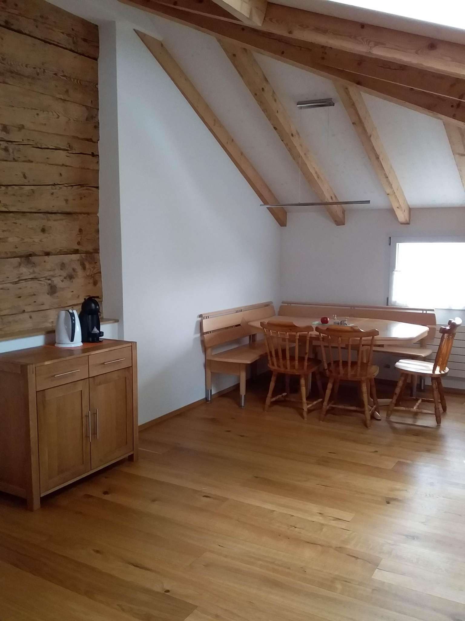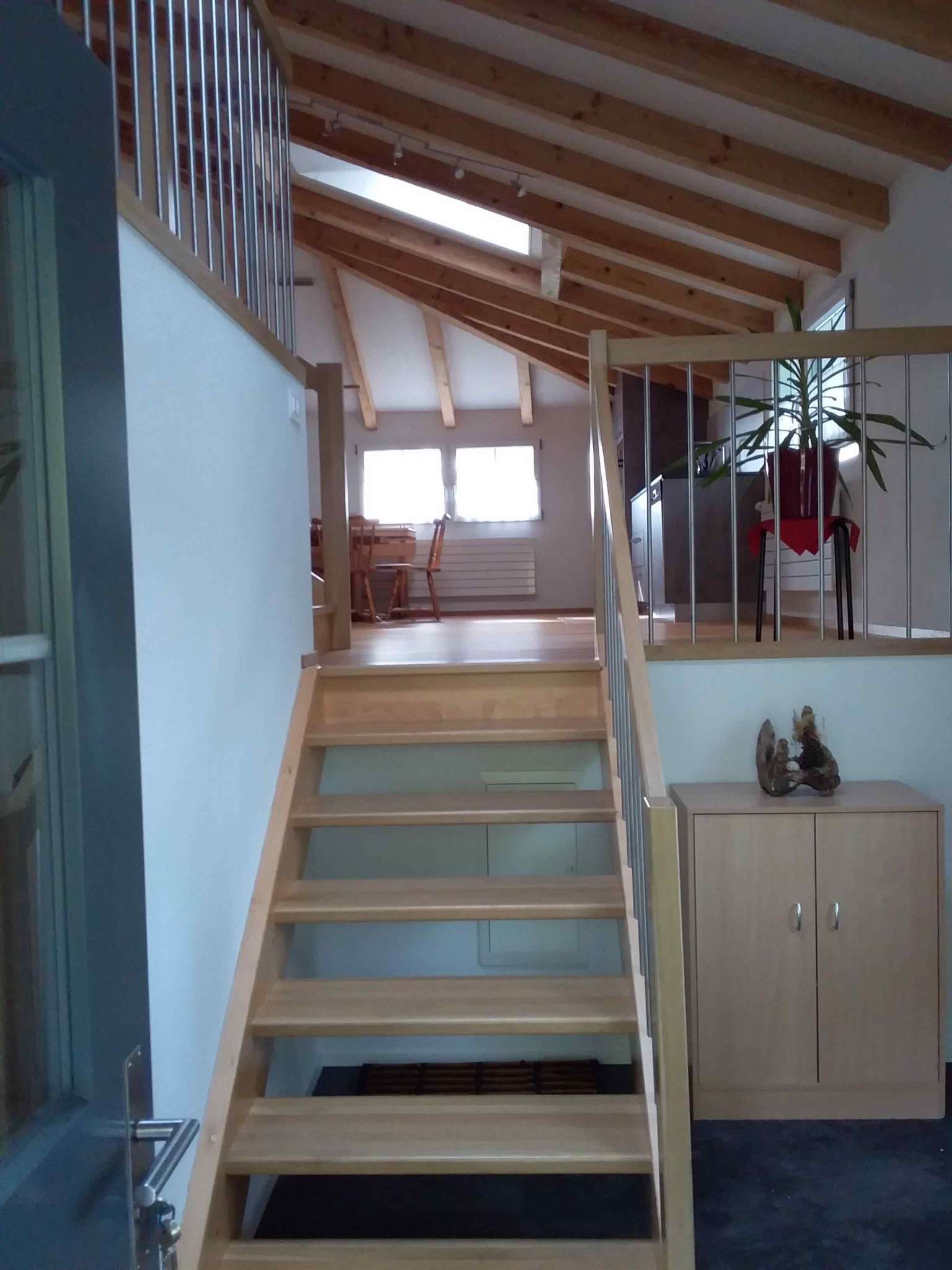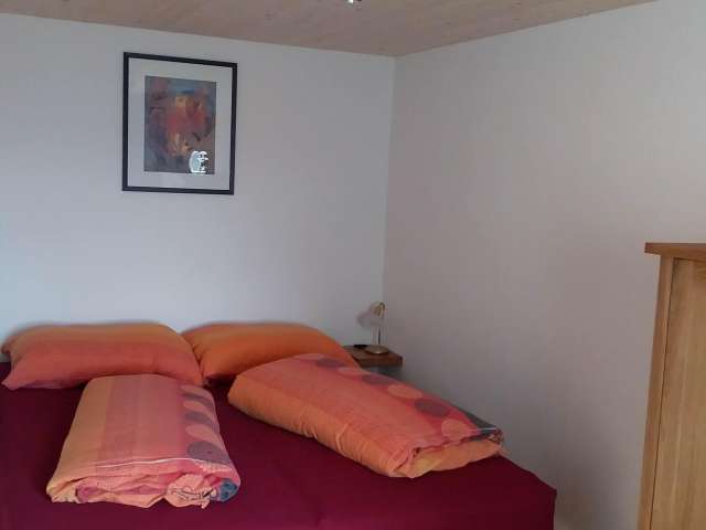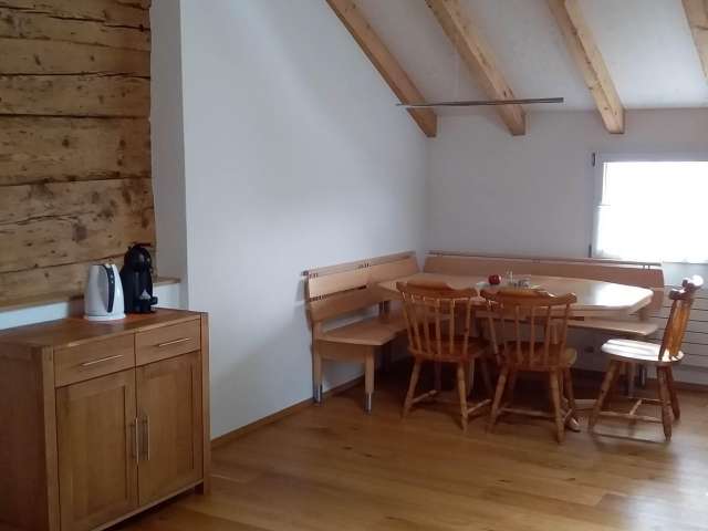 The wonderful, newly renovated 2.5-room apartment offers a cosy living/dining room with a kitchen, which is equipped with a dishwasher and refrigerator, and stocked with oil, vinegar, pepper and salt. The double bed in the bedroom and separate sofa bed on the mezzanine level sleep 2–3 people. Bed linen, kitchen linen and towels are provided.