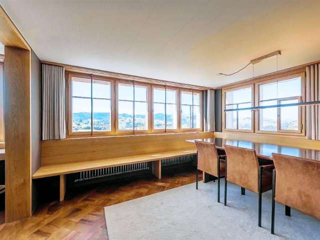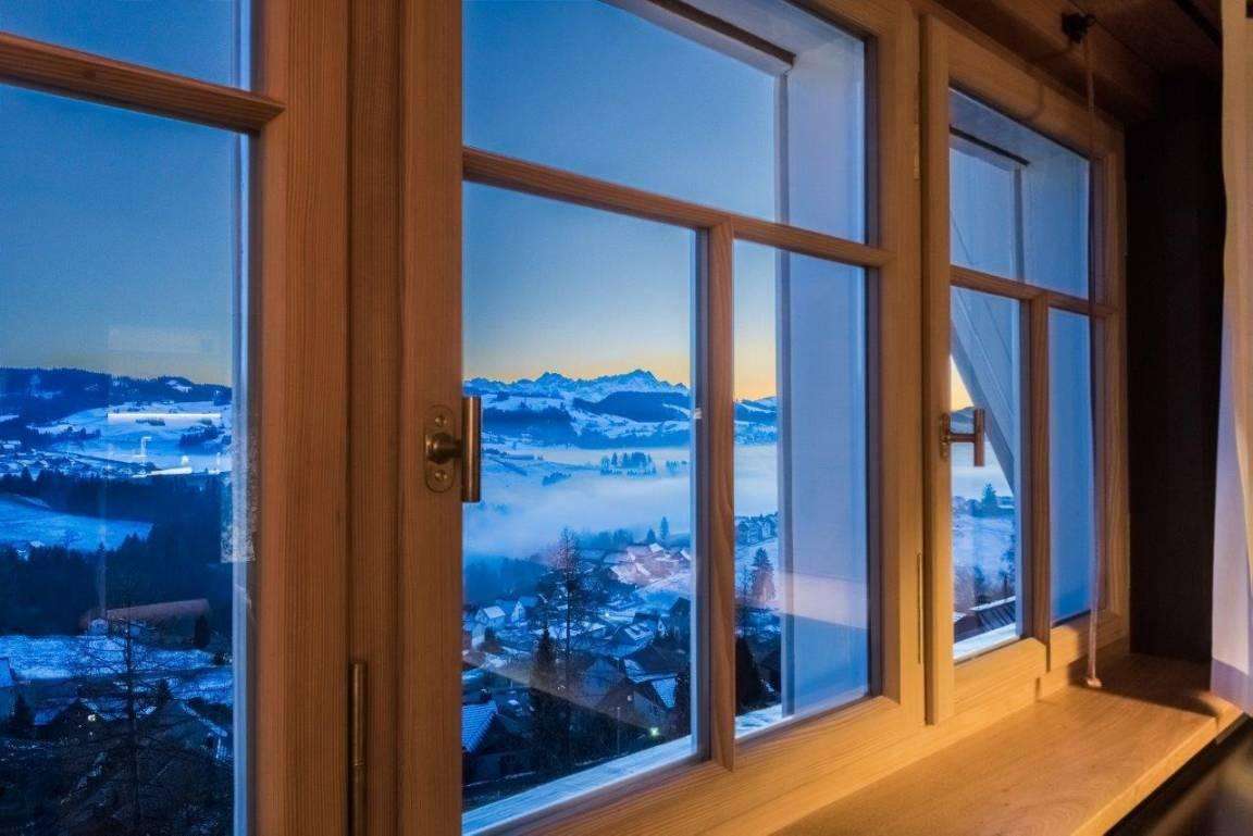 Historic structure has been combined with modern comforts in this newly renovated listed building on the village square. A room with a view of the Appenzellerland to the Säntis mountain range. A wonderful place to stay.