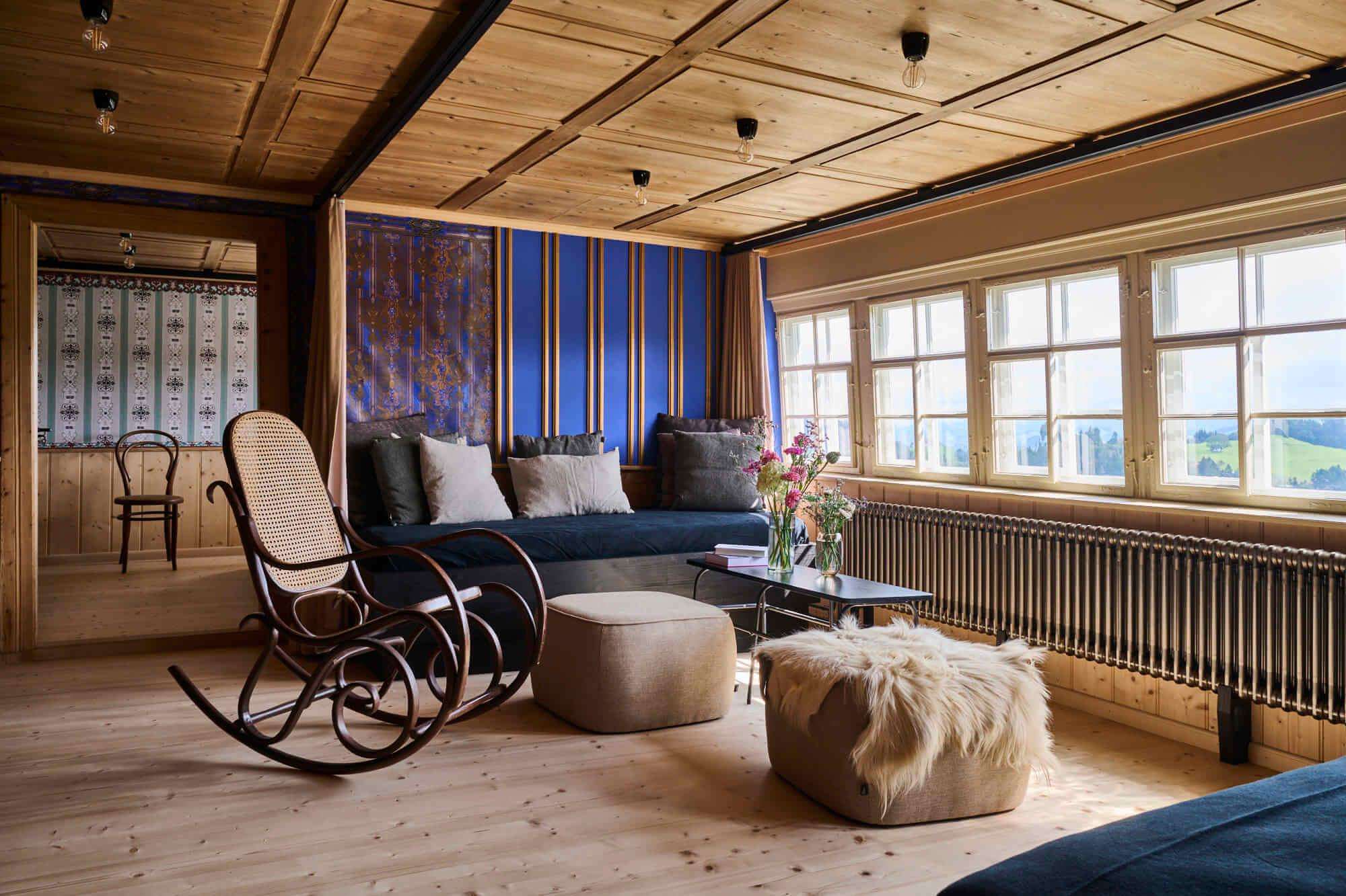 The impressive building on Gerenstrasse tells the story of the once flourishing textile industry in Appenzell. Built in the 19th century in the classicist style of the manufacturers' houses of the time, it bears witness to the economic importance of the region. On the initiative of a group from the village, the Fabrikantenhaus Foundation was established. The aim was to renovate the building and make it accessible to the general public. The project was completed in fall 2024. Since then, vacation guests have been able to enjoy the special atmosphere of the Fabrikantenhaus far away from the hustle and bustle. The vacation apartments can be booked via the booking platform of the Ferien im Baudenkmal foundation. The Fabrikantenhaus Schwellbrunn also offers flexible rooms, including a well-equipped event kitchen, which can be perfectly adapted for various events for up to 50 people - whether a meeting, workshop or festive occasion.