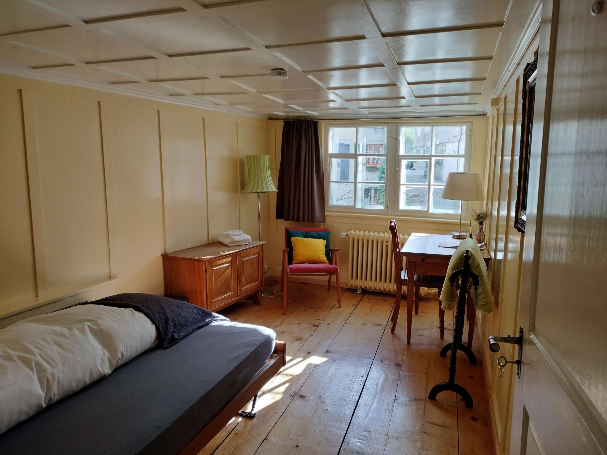 This authentically preserved 300-year-old Appenzell inn in Trogen offers five characterful, freshly renovated double rooms and one single room, showers and toilets off the hallway and a small roof terrace. The beautiful Rösslisaal can be rented for dancing, exercise, classes and social events.