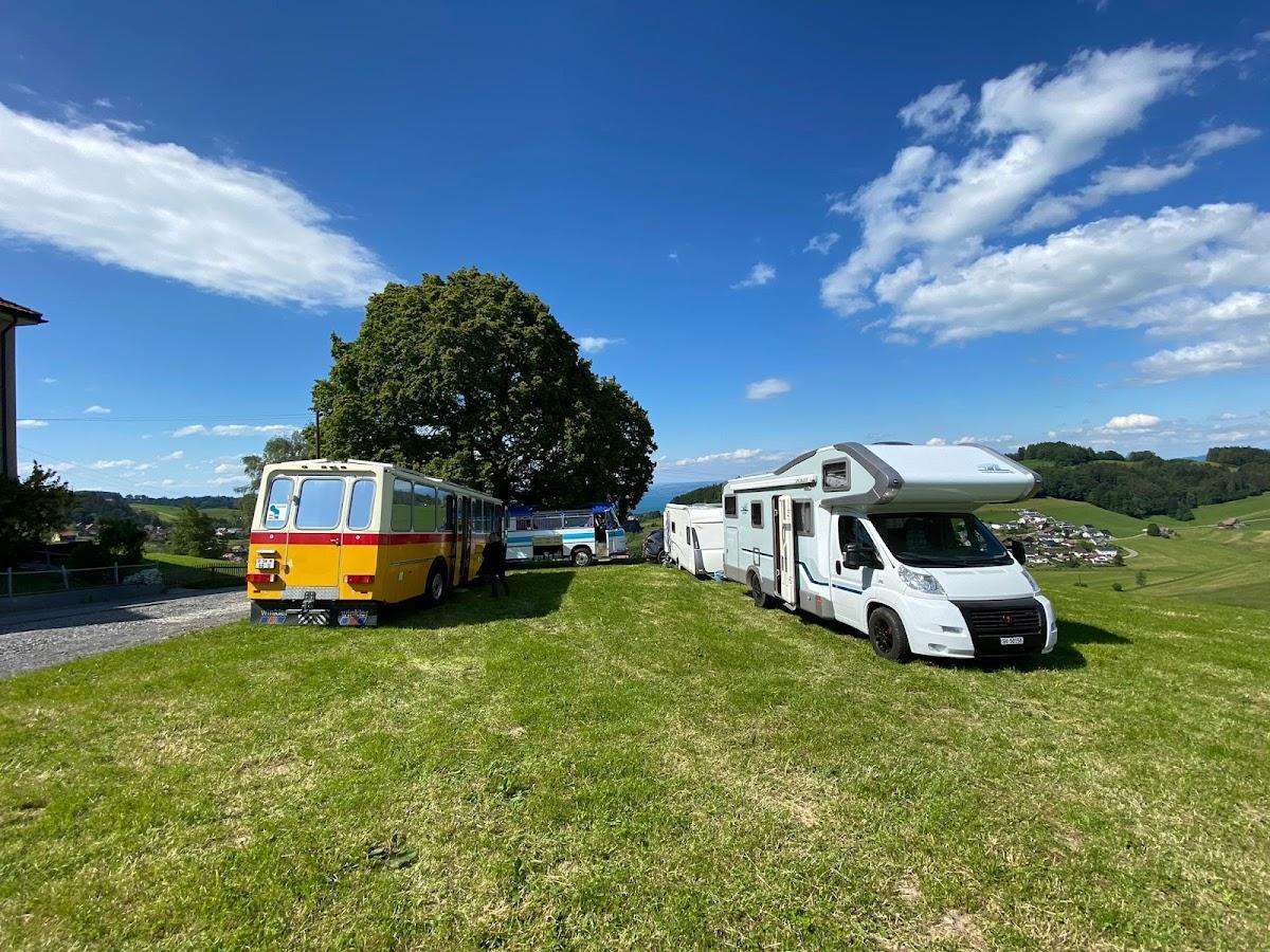 A campsite is available under the lime tree in front of the farm - with a marvellous view of the village of Heiden and Lake Constance. Shower and WC are available in the house next door. If you are interested, please contact Fabienne and Christoph Kappeler directly.