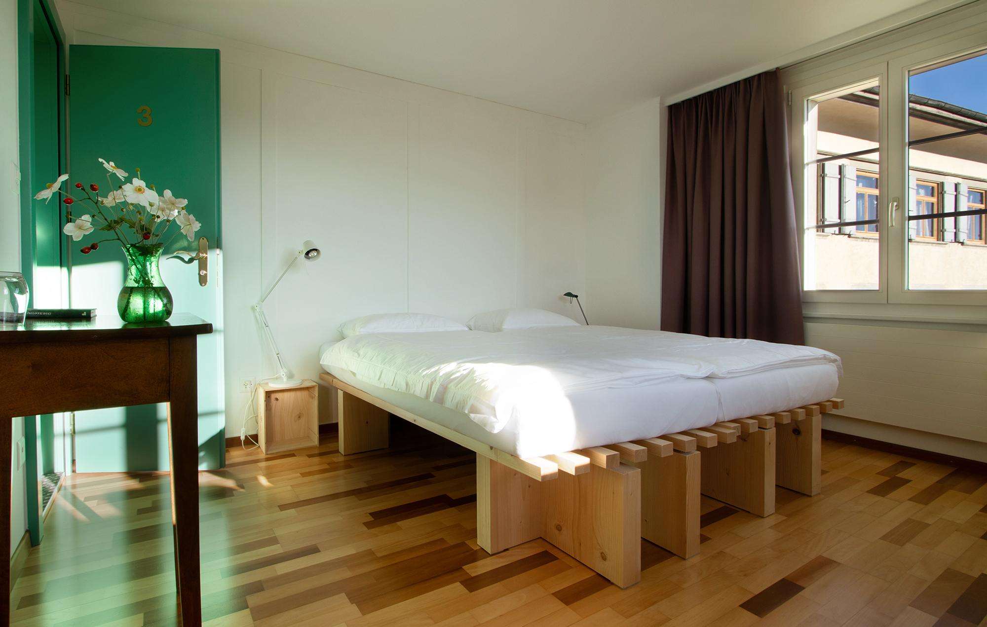 The five rooms at the Krone Trogen offer a cozy atmosphere and combine the old with the new. The history of the house and the modern spirit of the times are palpable. The Krone is a wonderful starting point for a hike in the Appenzell hills, a visit to the museum with the “Trogner Bähnli” to St.Gallen or a glass of wine in the Krone Bistro.