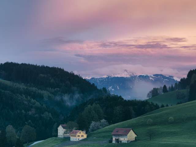 On an elevated site above Heiden village, the Müllersberg group accommodation features spectacular views from Lake Constance to the Alpstein mountains.