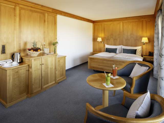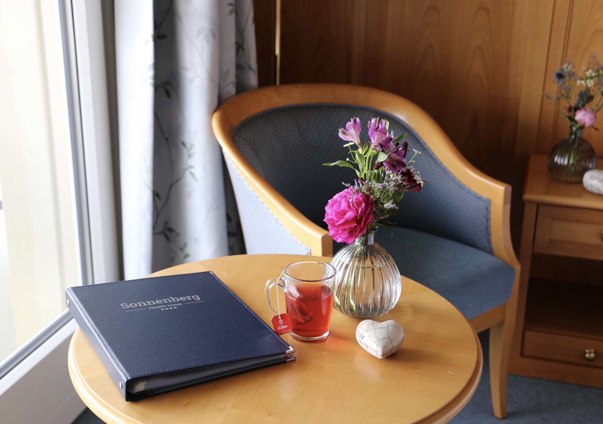 With its light yellow facade and romantic balconies, the Sonnenberg Health Hotel is 972 m above sea level. M., in Schwellbrunn. The place that was voted the most beautiful village in 2017. With a breathtaking view over the mountains, it offers those in need of relaxation the opportunity to concentrate on themselves and the recovery of their bodies. Guests can retreat to one of the 16 rooms with a high standard of equipment and a homely atmosphere. Each room has its own spacious balcony and is characterized by its unique view. With the scent of herbs from the restaurant and the view almost as far as Lake Constance, there is a holiday feeling. With the daily changing 4-course menus lovingly created by the kitchen team, guests experience that enjoyment and plant-based nutrition are by no means contradictory. For those who want to start an energetic day, the kitchen surprises with an appetizing breakfast buffet and freshly squeezed juices from the fruit and vegetable basket. The culinary delights are not neglected at the rich lunch buffet either. According to the Sonnenberg nutrition concept, all dishes are not only vegan, but also free of gluten and sugar.