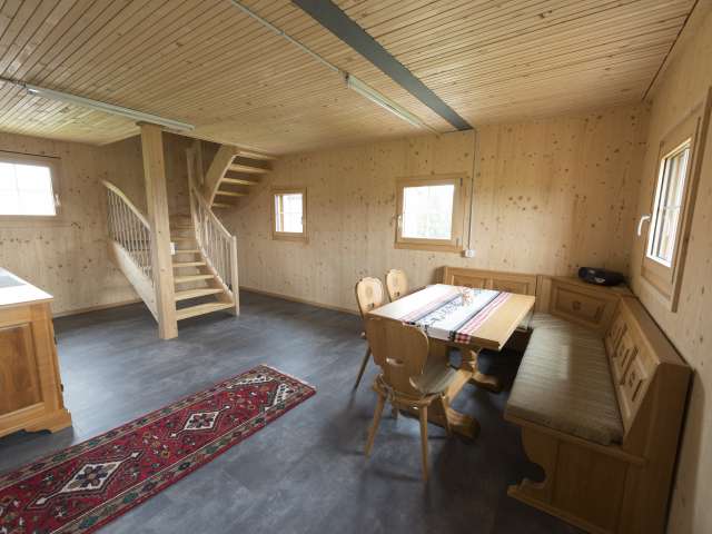 Decorated in typical Appenzell style, the restaurant can accommodate 40 people. The splendid tiled stove never fails to impress our guests. Hikers visit us throughout the year, drawn by the charming atmosphere and the delicious food. The sunny beer garden offers unbeatable views of Alpstein, Montafon and Vorarlberg.
