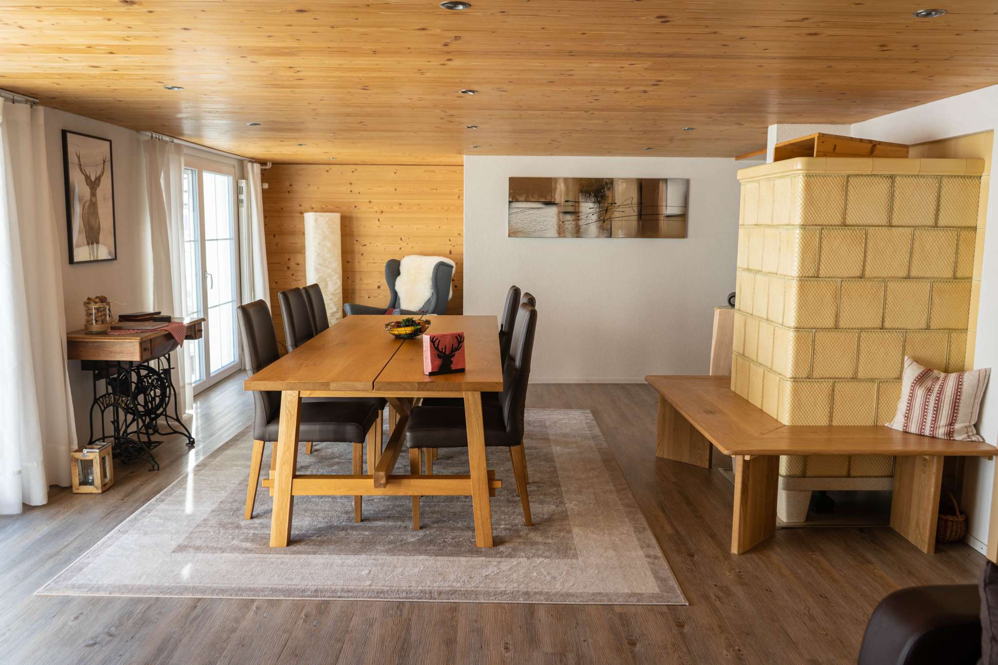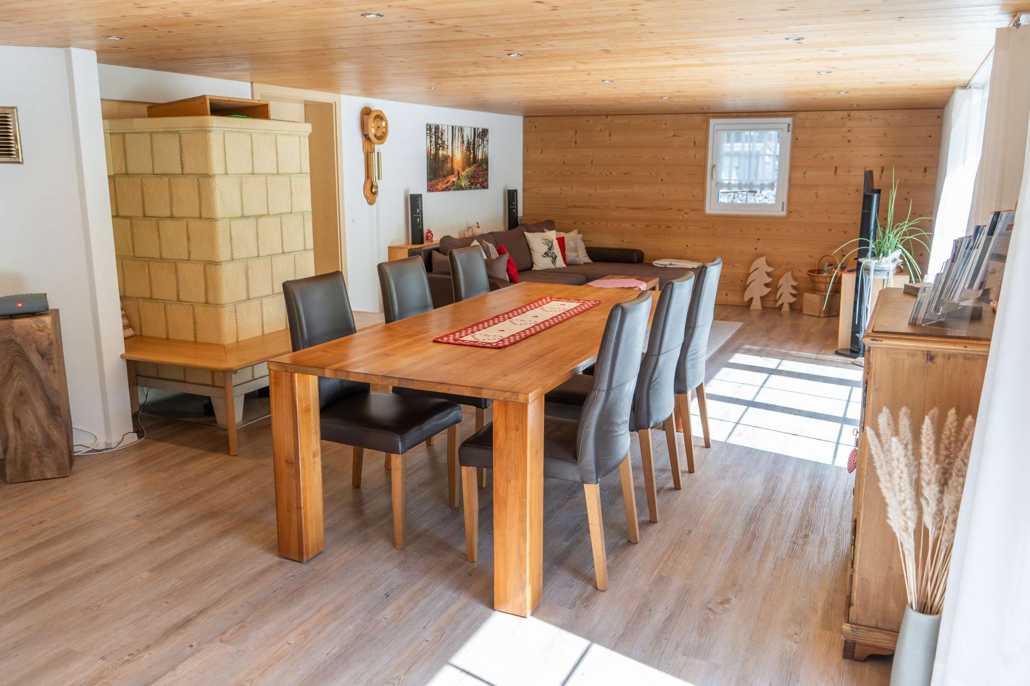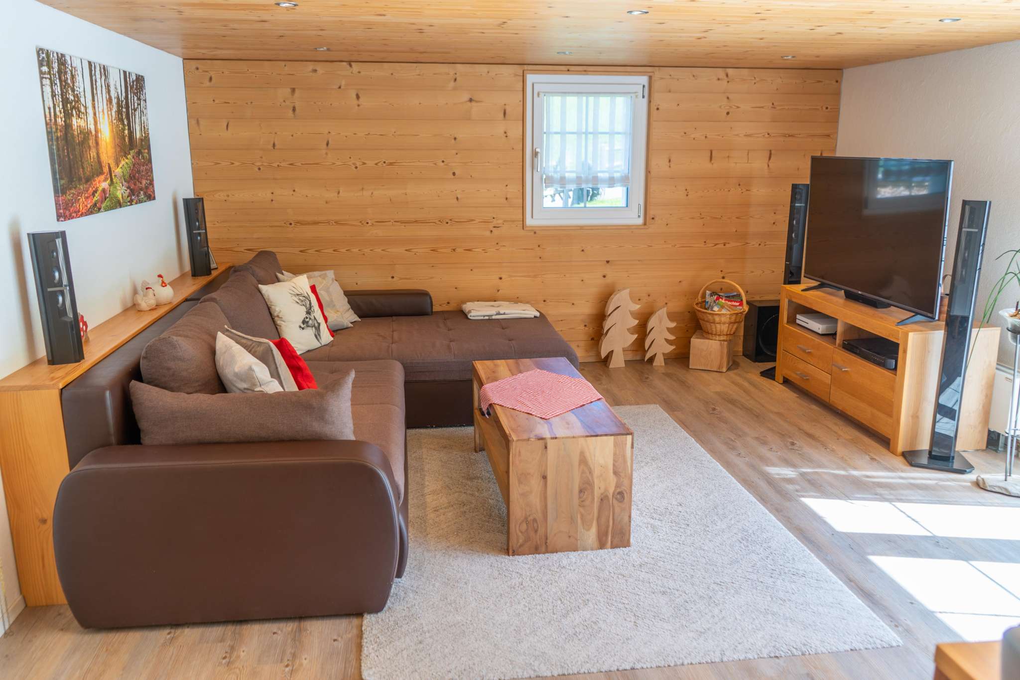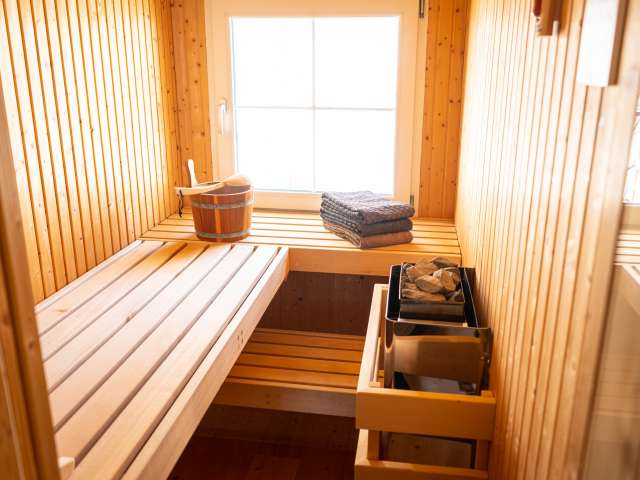 After a winter walk to Hochhamm or skiing with the children on the Hörnli ski lift (which is within walking distance), you can warm up in the sauna. Afterwards, a modern kitchen allows you to enjoy a cozy fondue evening in the warm parlor, but the equipment is also available for more sophisticated menus.