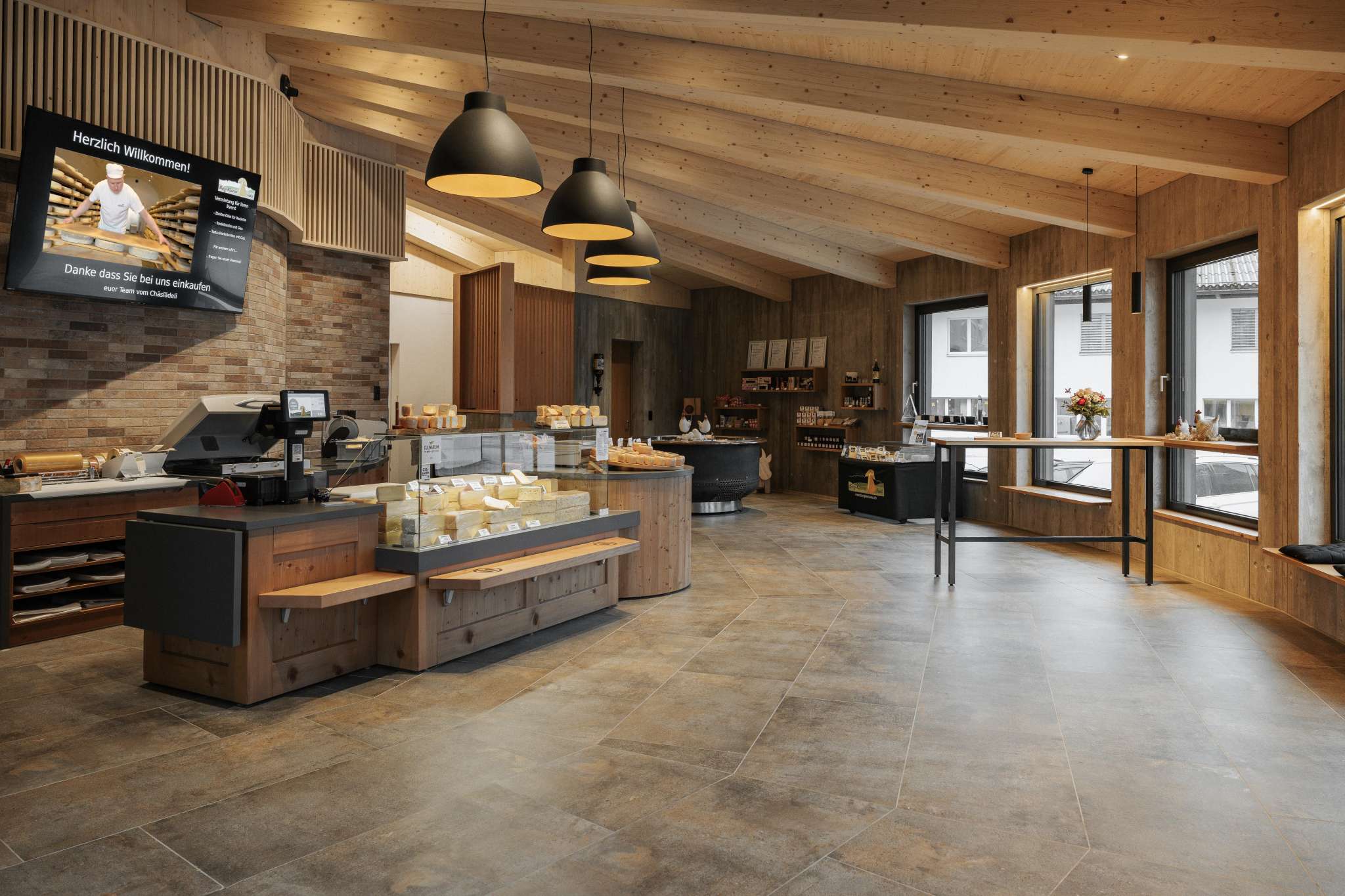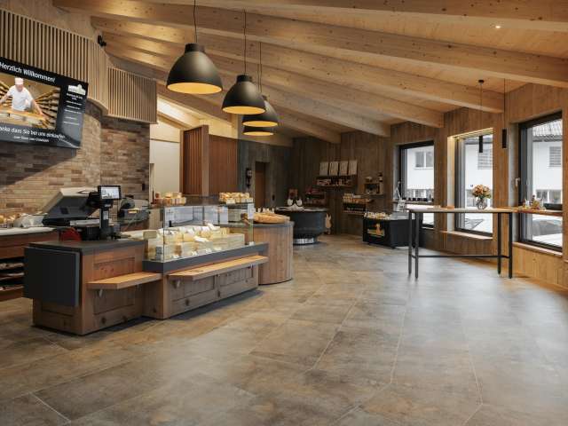 Depending on the season, up to 12 people work in the mountain cheese dairy. 50,000 to 60,000 kilograms of the finest Appenzell mountain milk are processed daily to make the various semi-hard and mountain cheese specialities as well as raclette cheese.