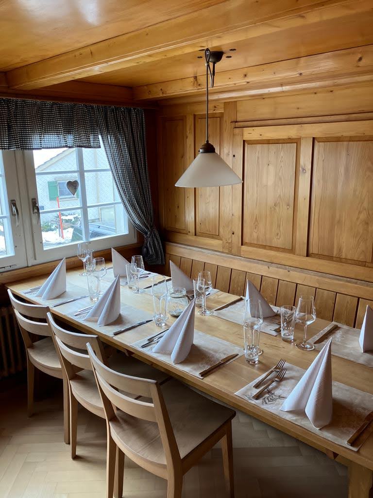 The hosts Karin Wittenwiler and Gabi Brunner are proud of their Schwellbrunn inn's long history. It was first mentioned as the «Hirschen» tavern in Schwellbrunn’s historic land register in 1834. This proud tradition continues to this day under the loving and devoted management of today's proprietors.
