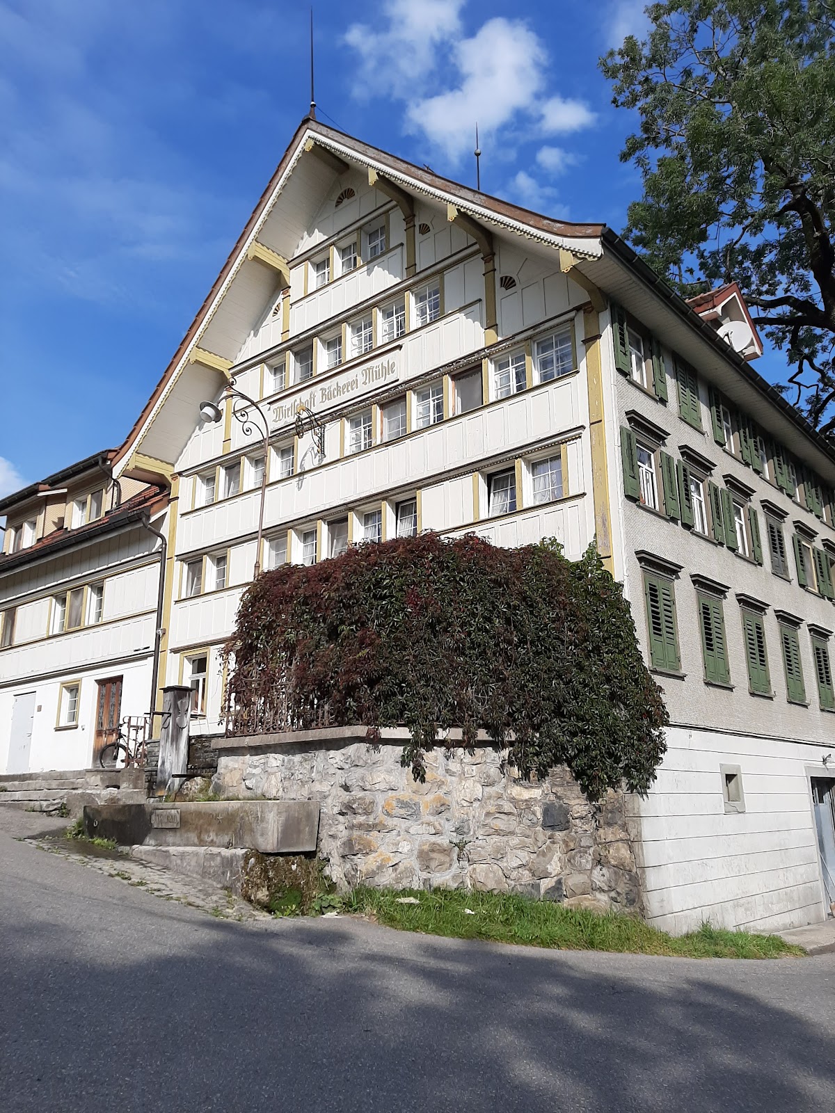 The mill in Hundwil was built in 1780. It has since been renovated and modified several times. Today’s business comprises the bakery and pastry shop, a restaurant and a milk collection point.