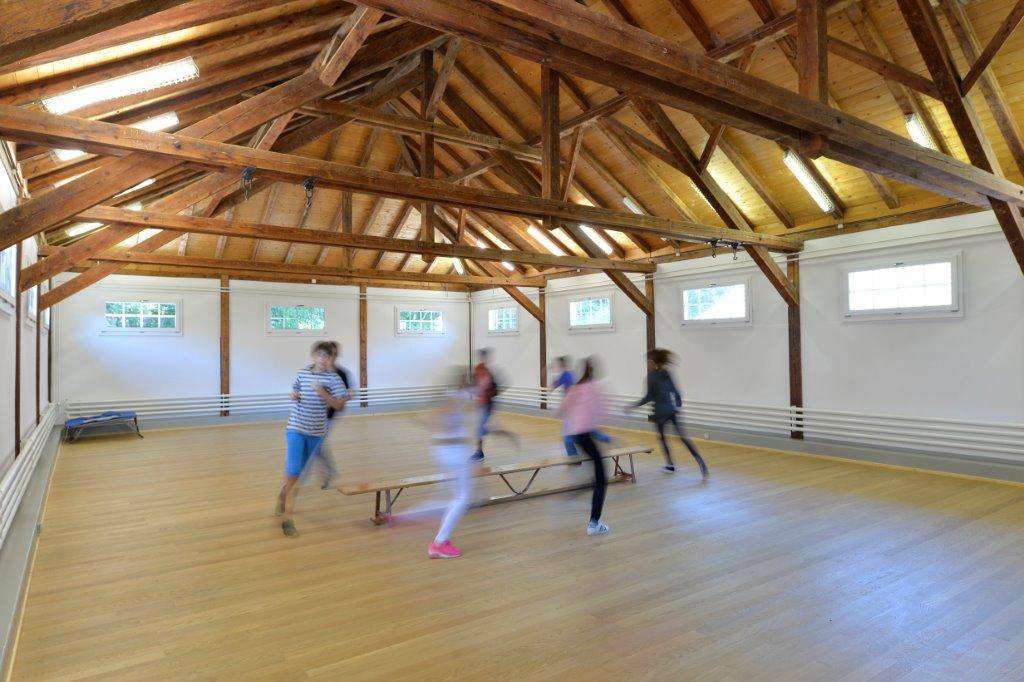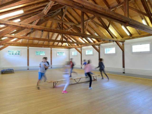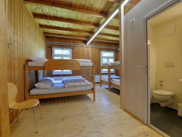 The beautifully kept and cosy accommodation has room for 59 people in 11 bedrooms (29 bunk beds and 1 single bed). The high-quality mattresses, Nordic duvets with pillows and freshly laundered bed linen create an ideal climate for a good night’s sleep. A shower towel for each guest will also be available at the holiday house. A spacious and rustic dining room seats 80 people. The host will pamper you with breakfast, lunch and dinner, as arranged. The lounge, which is also suitable for seminars, is equipped with a whiteboard, piano and pool table. Our 160-square-metre gym is suitable for a number of sports. Please note that the kitchen is not available for use by guests.