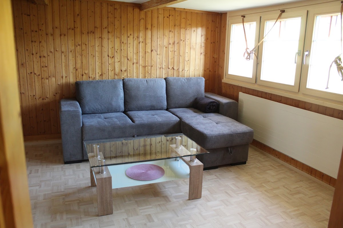 The Stöckli holiday home has two bedrooms (2 & 3 bed), has a living room, a dining room, a kitchen with dishwasher, oven and washing machine, and a shower/WC. A cot is also available on request. The house has central heating, but please note that the bedrooms are not heated. Outside there is a seating area, a sandpit and a slide. Rental is possible Saturday-Saturday, 7 nights for CHF 770, plus CHF 120 for final cleaning. The Stöckli is ideal for 5 guests (plus baby). The house is surrounded by nature and has fine views of Säntis, Alpstein, Speicher, St. Gallen, Eggersriet and down to Lake Constance. The village with its baker, small shop, open air pool and postbus stop, takes 15 minutes to reach on foot. Many attractions are also close enough to walk to, such as the Urwaldhaus, Zum Gupf and Dorfhus Gupf restaurants. If you want to roast sausages over a fire, then there is a campfire site close by. The Appenzell Spa Bath (Appenzeller Heilbad Unterrechstein) is in Grub AR, a nearby village. The farm is home to milking cows, beef cattle, calves, pigs, goats, chickens and cats. We look forward to welcoming you too!