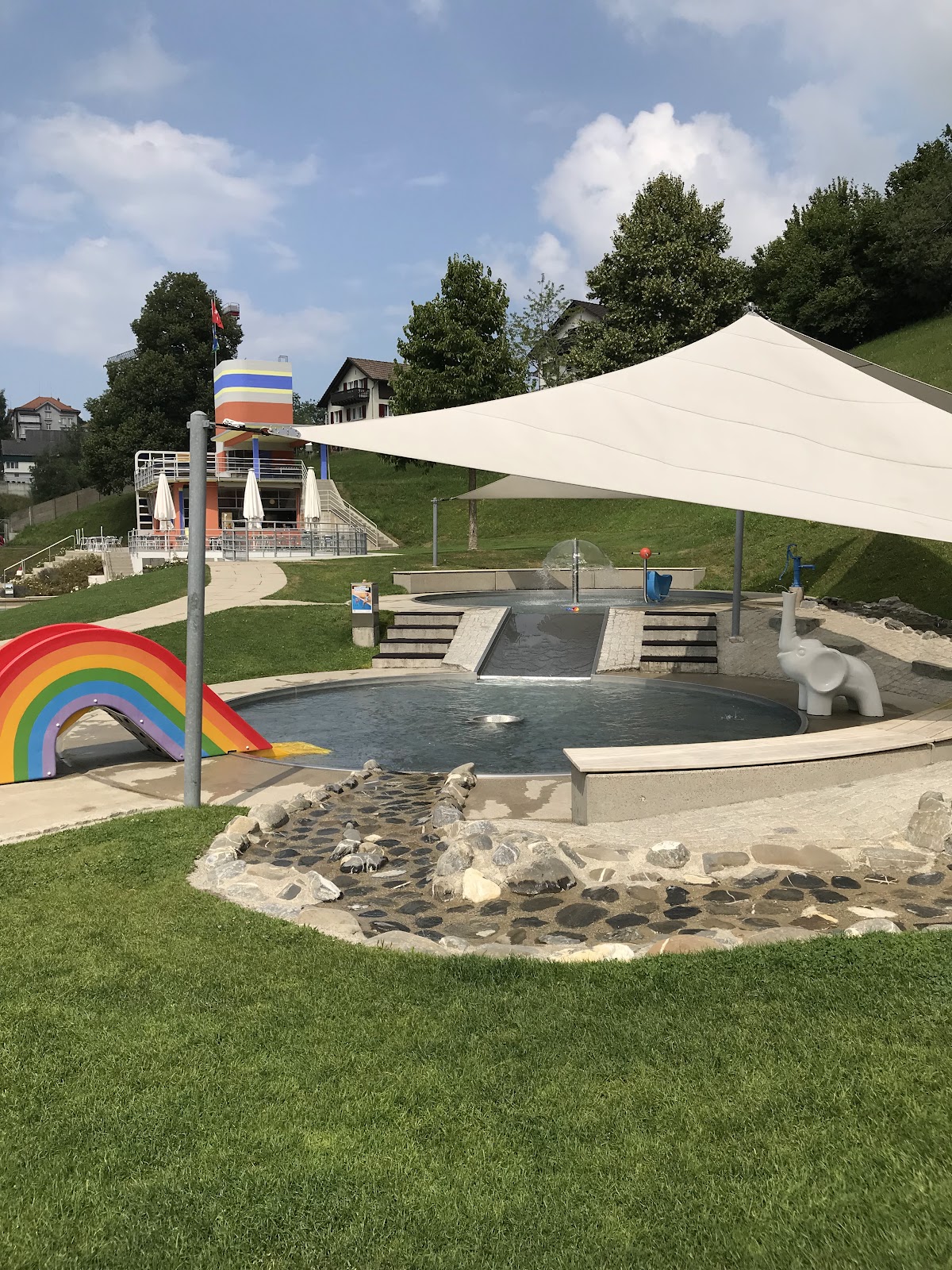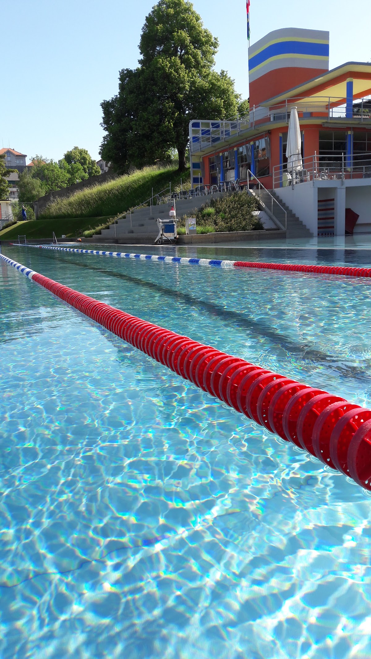 La piscine comprend un bassin sportif, un bassin de plongée avec plongeoir, un bassin non-nageurs et une pataugeoire avec toboggan et ruisseau ludique. Pour les enfants, il existe également une aire de jeu gazonnée avec bac à sable, balançoire et tour d'escalade. Les clients peuvent également profiter d’un terrain de beach volley, d’un terrain de pétanque, d’une slackline, d’une table de ping-pong et d’un baby-foot. Le restaurant et le kiosque sont accessibles même sans entrée.