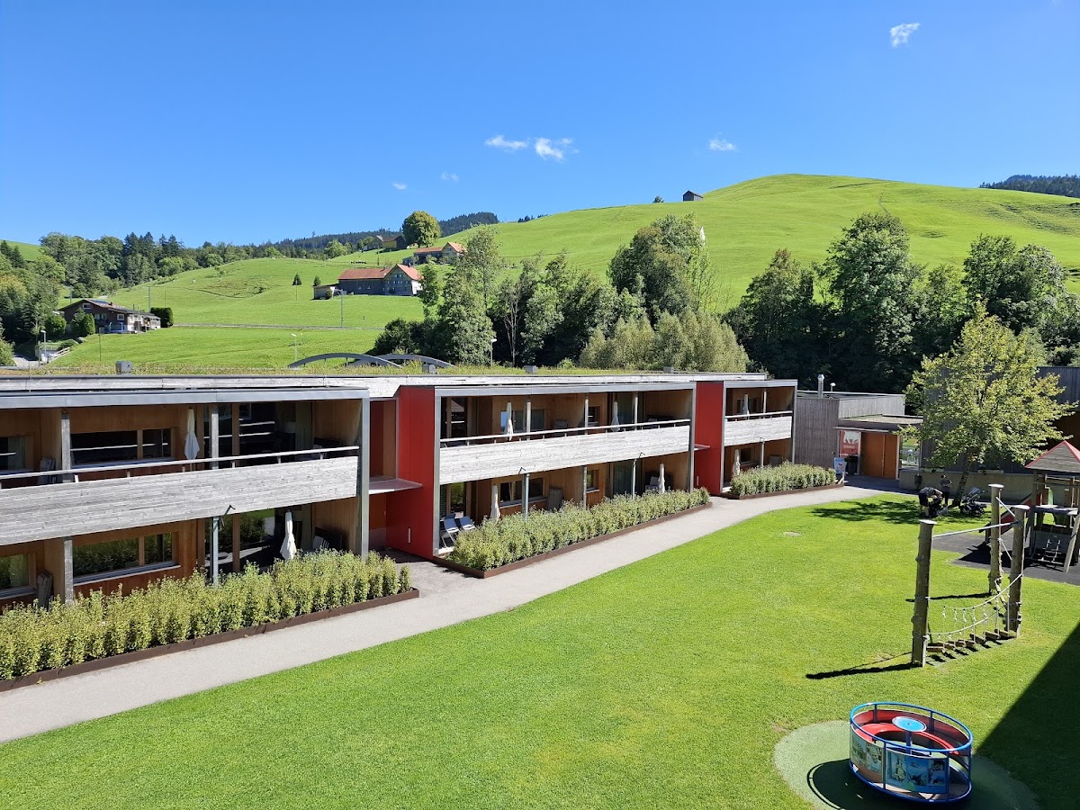 Le village de vacances Reka Urnäsch abrite des maisons Minergie, construites en bois local, pouvant accueillir jusqu’à 50 familles (appartements de 2,5 à 5,5 pièces avec balcon ou terrasse). Dans notre étable pour petits animaux et notre zoo, les enfants ont la possibilité d'entrer en contact avec les animaux du village de vacances. Les enfants peuvent entrer en contact avec différents animaux, les nourrir, les caresser et apprendre à mieux les connaître. Une piscine avec pataugeoires et espace sauna, de nombreuses salles communes ainsi que diverses aires de sport et de jeux en extérieur, à l’inclusion d’une grande trampoline, sont des sources de plaisir et de divertissement infinies.