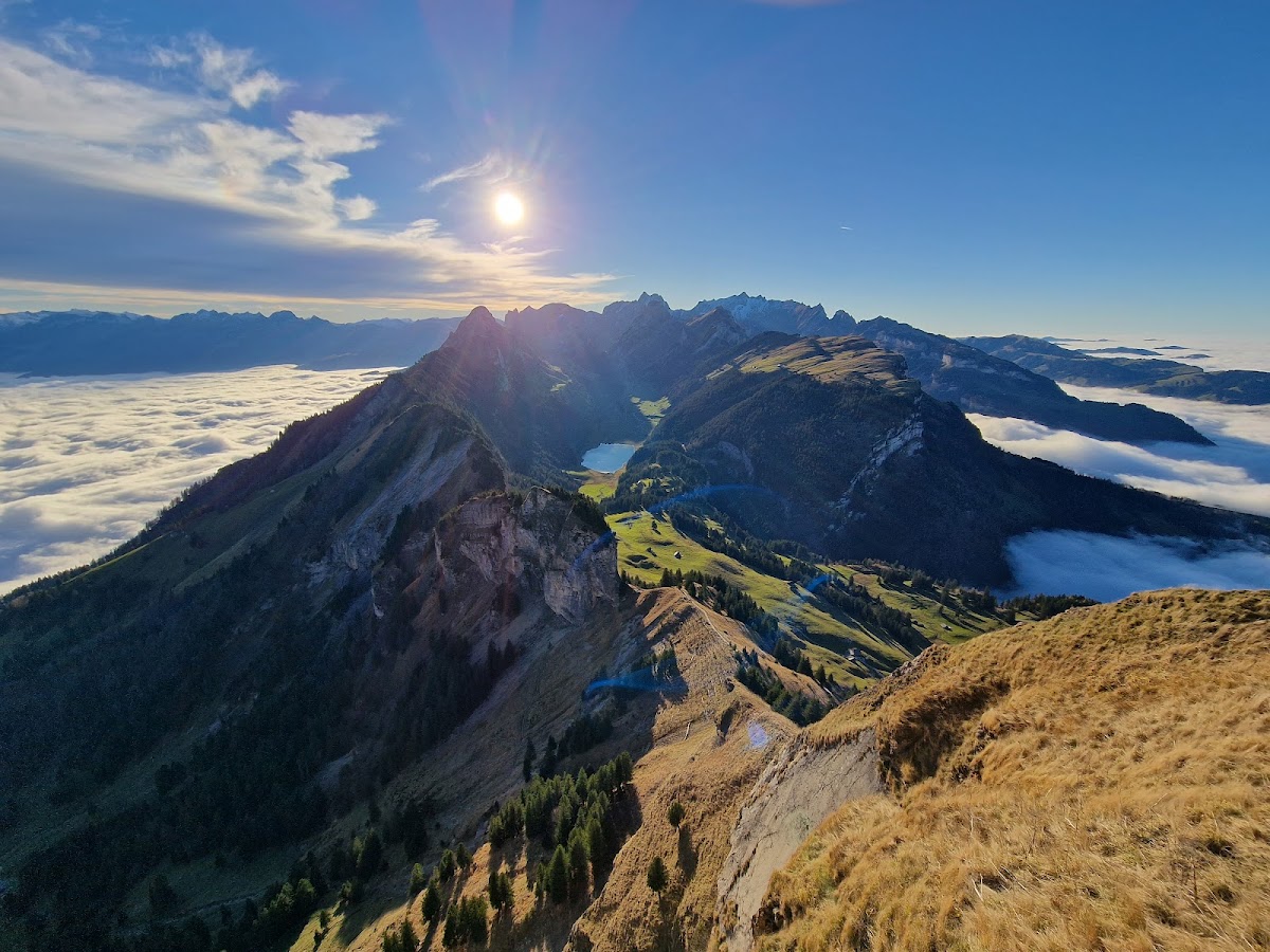 En huit minutes seulement, le téléphérique Hoher Kasten vous emmène directement de Brülisau à 1794 m d’altitude en vous dévoilant des paysages vallonnés idylliques et des fermes typiques de l’Appenzell. Une fois là-haut, votre regard embrassera cinq pays (Allemagne, Autriche, Alpes suisses et Plateau, Italie, France).