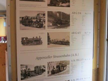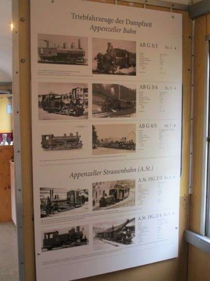 Le musée présente également de nombreux objets du quotidien passé du chemin de fer et du personnel de l’époque, ainsi que des expositions documentaires tournantes sur la longue histoire des chemins de fer appenzellois. Il retrace également l’histoire du projet passé de chemin de fer reliant Appenzell au Säntis via Wasserauen – Seealpsee – Meglisalp ainsi que des locomotives et voitures anciennes qui s’inscrivaient, pour beaucoup, dans le cadre d’initiatives pionnières.