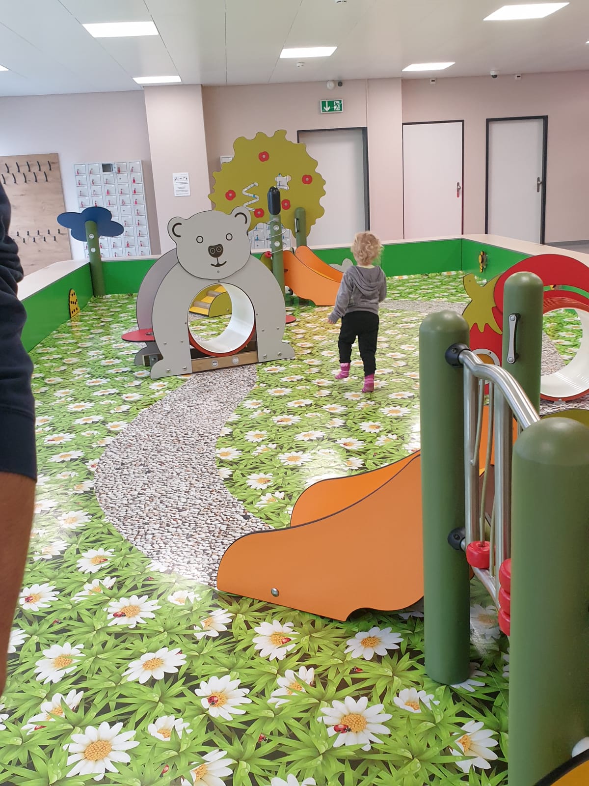 La gigantesque aire de jeux intérieure, de grande qualité, garantit des heures de jeu et de plaisir aux petits comme aux grands enfants.