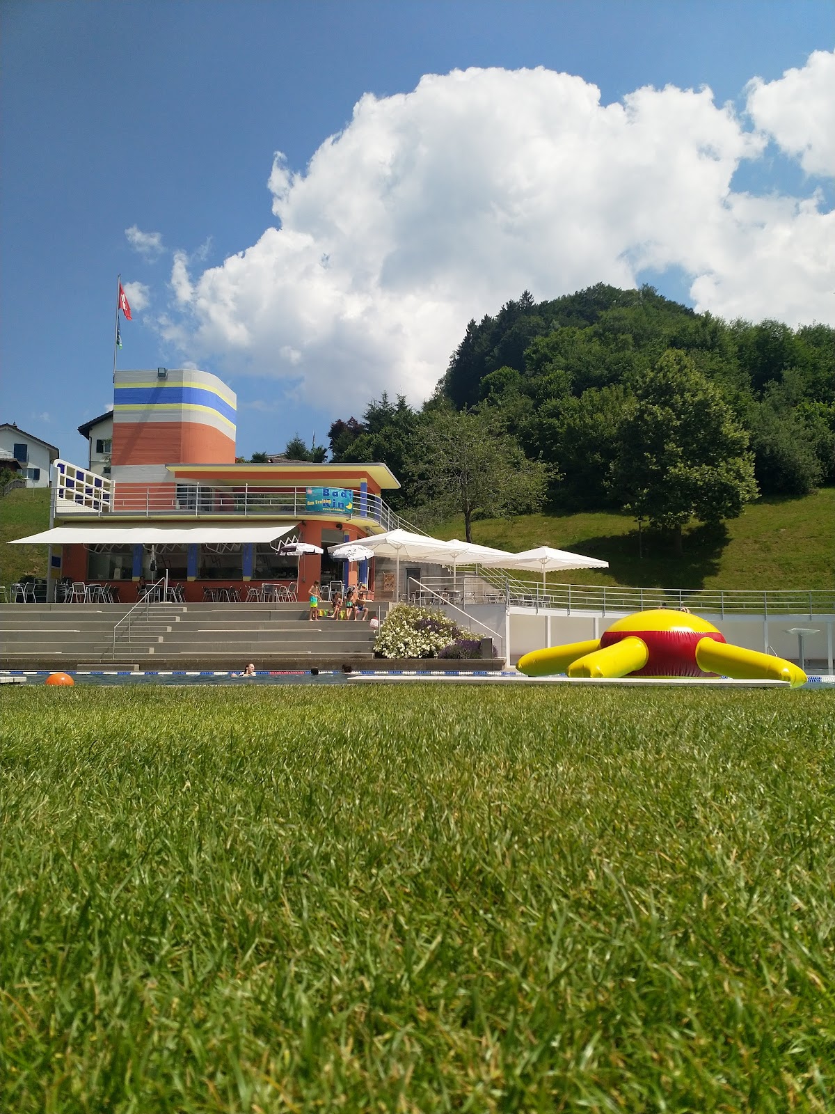 La piscine comprend un bassin sportif, un bassin de plongée avec plongeoir, un bassin non-nageurs et une pataugeoire avec toboggan et ruisseau ludique. Pour les enfants, il existe également une aire de jeu gazonnée avec bac à sable, balançoire et tour d'escalade. Les clients peuvent également profiter d’un terrain de beach volley, d’un terrain de pétanque, d’une slackline, d’une table de ping-pong et d’un baby-foot. Le restaurant et le kiosque sont accessibles même sans entrée.
