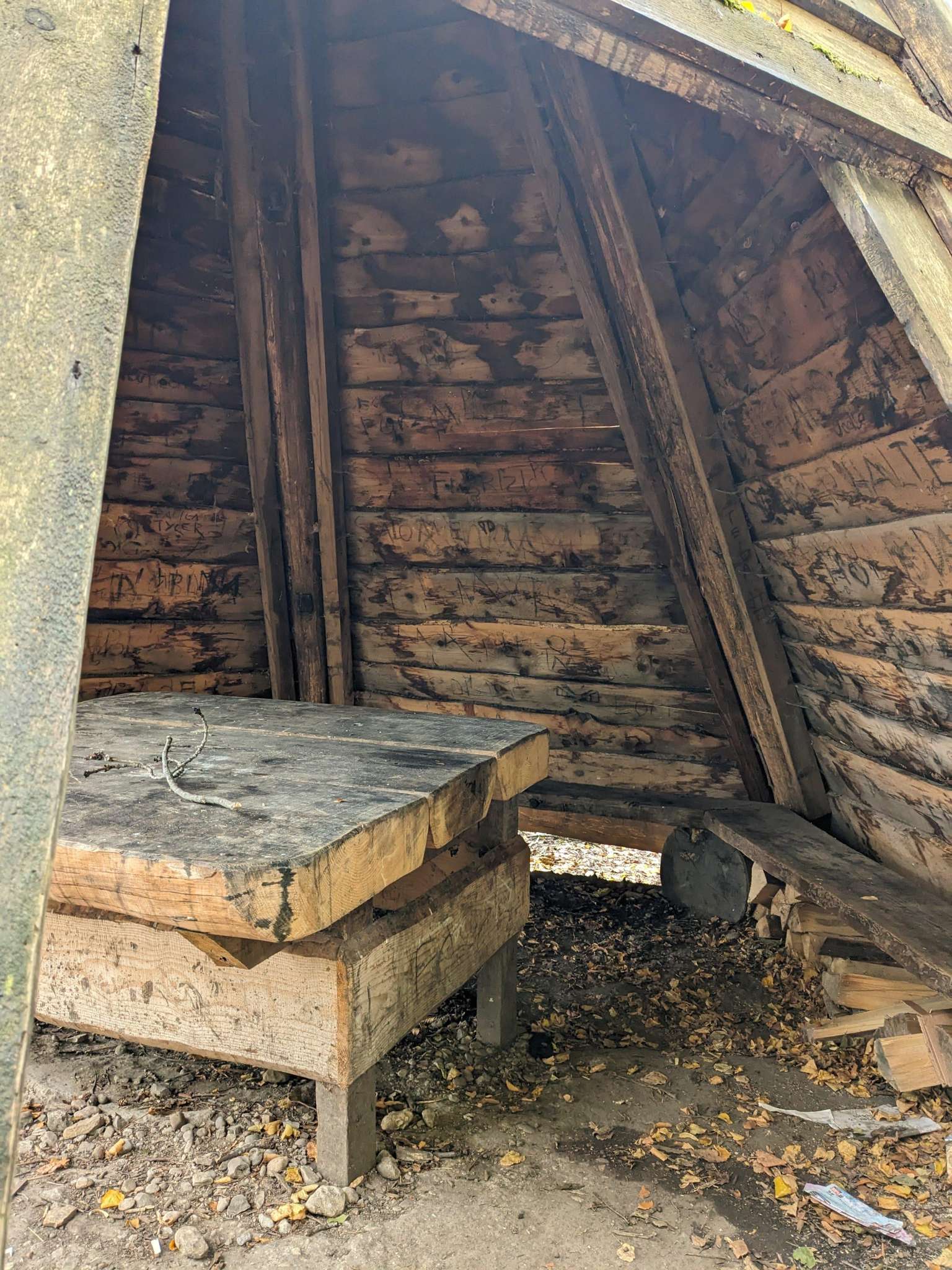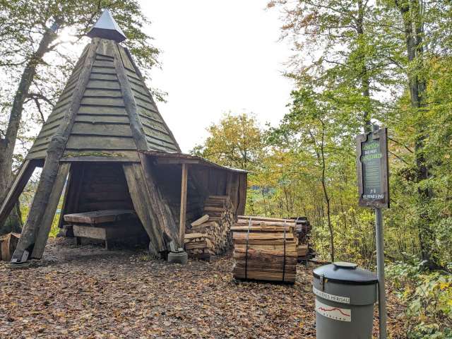 Foyer couvert avec bois de chauffage.