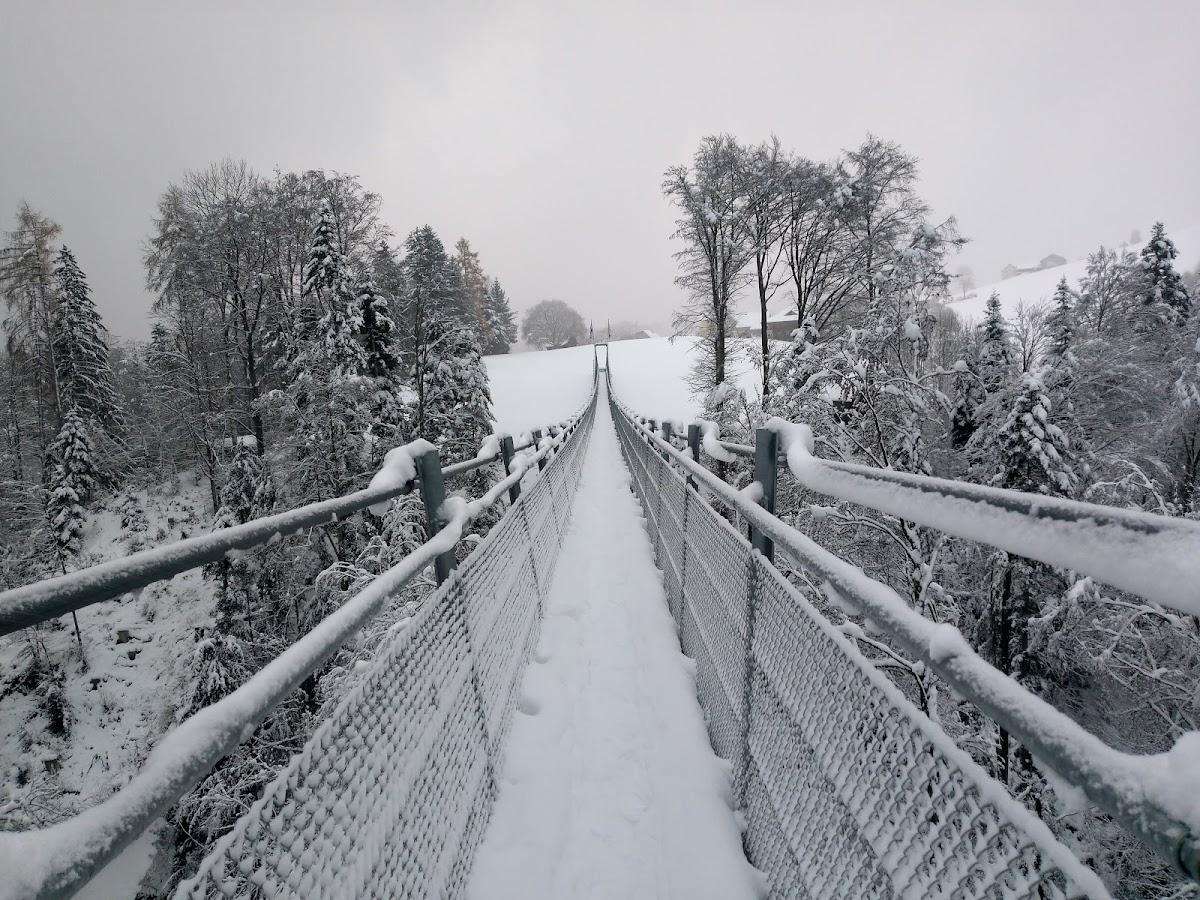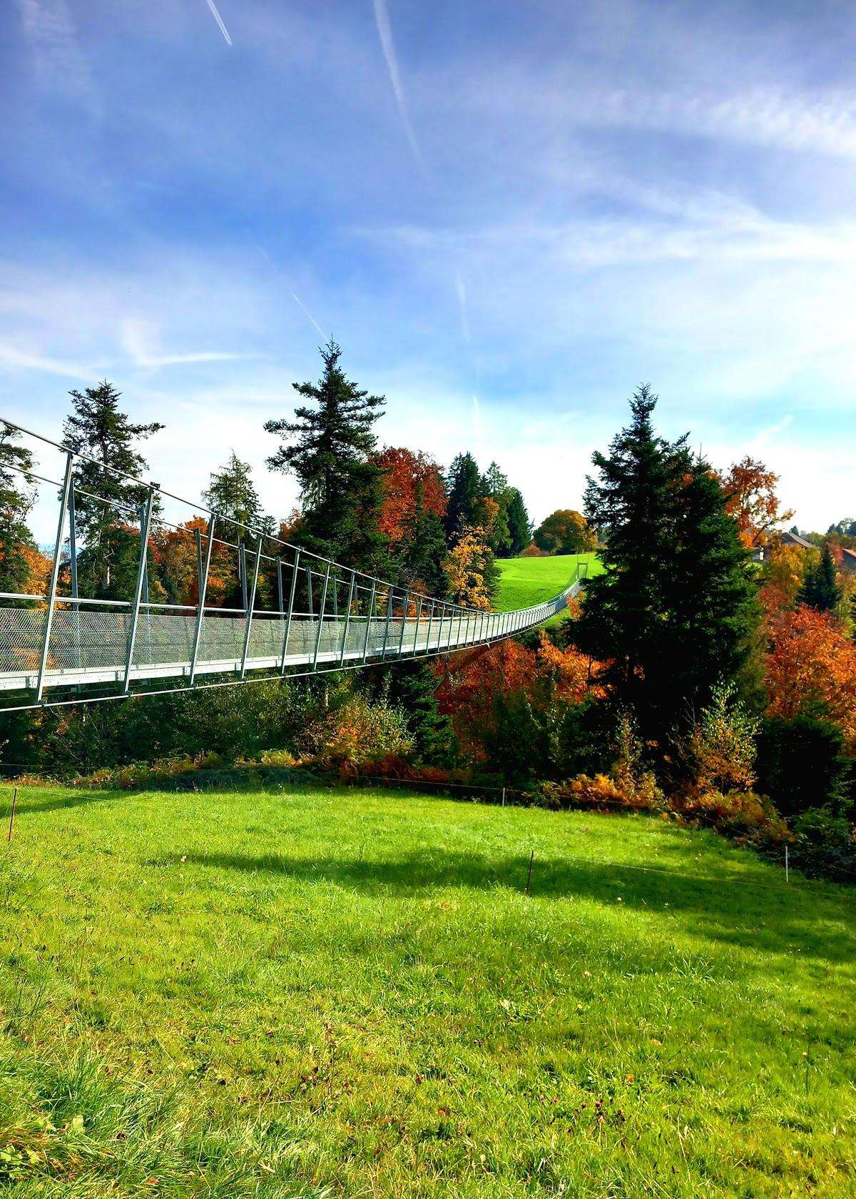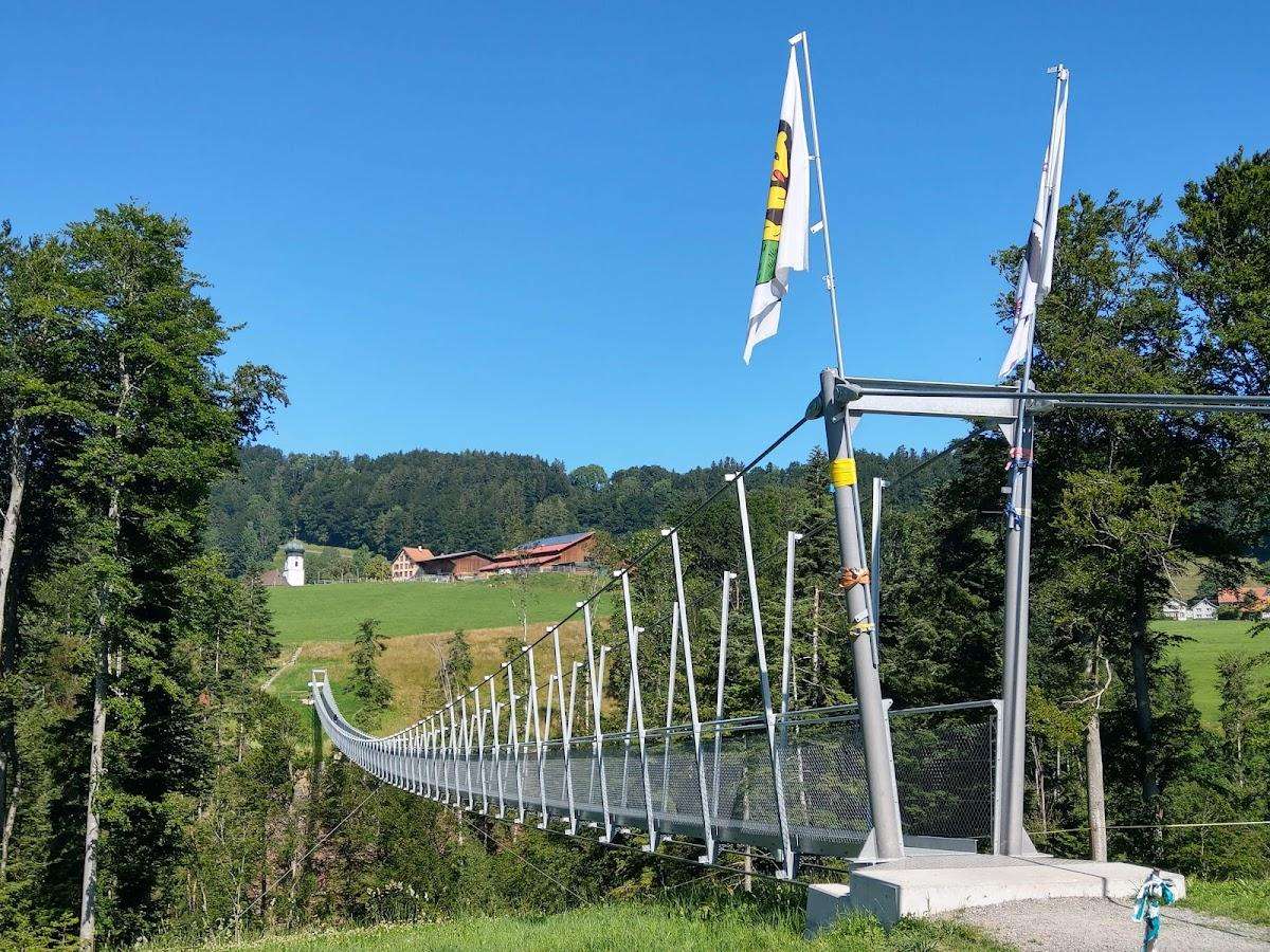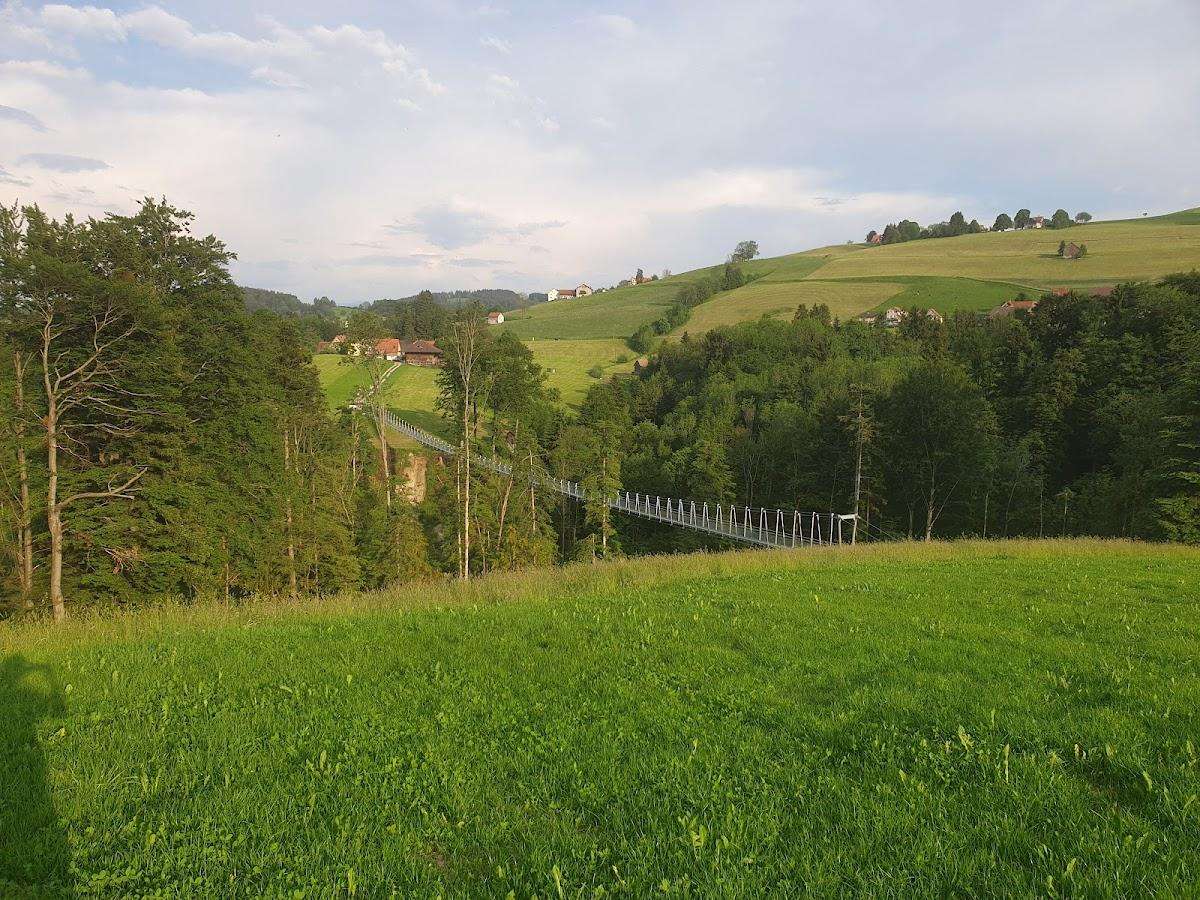 Depuis avril 2019, les deux villages de Grub AR et Grub SG sont à nouveau reliés entre eux par un magnifique pont suspendu de 180 mètres de long au-dessus du Mattenbach. Un sentier de randonnée très apprécié au-delà de la frontière cantonale, qui relie Frauenrüti Grub AR au territoire de Grünau Grub SG, se trouve ainsi à nouveau accessible.