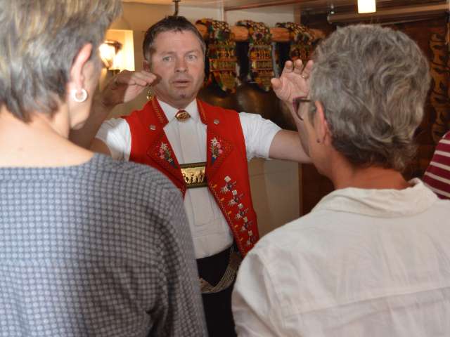 Des cours de yodel sont également proposés à la Roothuus. Un chanteur revêtu du costume traditionnel vous apprend à chanter le yodel naturel et vous donne des astuces pour jouer du talerschwingen (ou ronde de l’écu). Sur demande, nous agrémentons votre visite guidée ou cours de yodel de musique ou d’un apéritif.