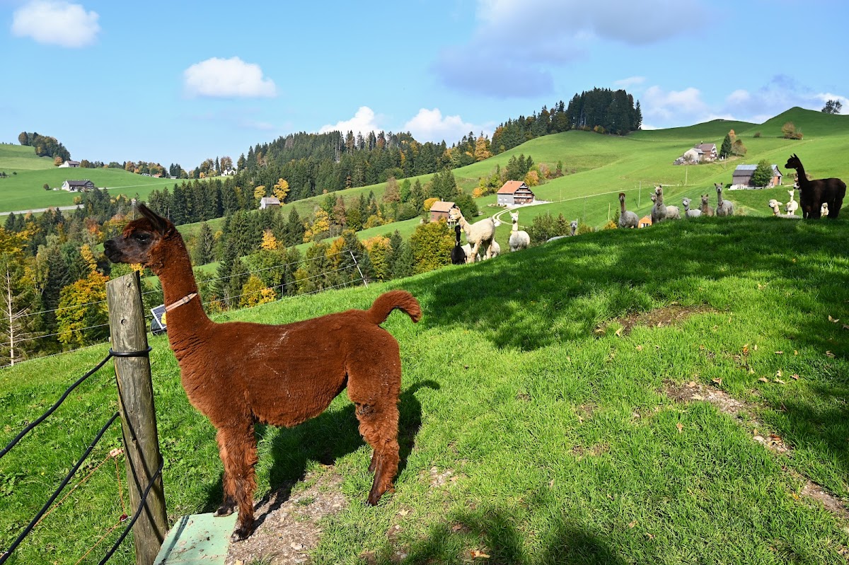 «Alpaka Appenzell» est situé à 1000 mètres d’altitude sur le chemin de Saint-Jacques, sur la colline d’Arnig.