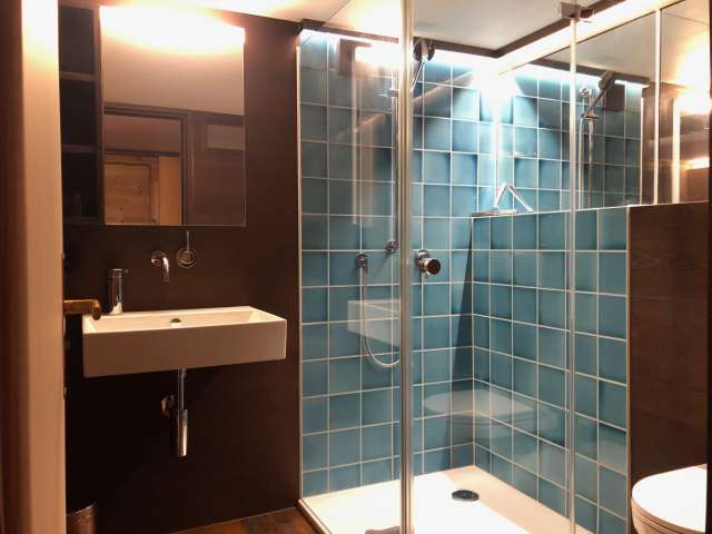 L’appartement au deuxième étage offre suffisamment d’espace pour deux à quatre personnes ainsi que de nombreux petits coins confortables pour se détendre. Cuisiner dans la cuisine moderne est un vrai plaisir, à moins que vous ne préfériez vous offrir un délicieux repas au «Beizli» situé juste en bas?
