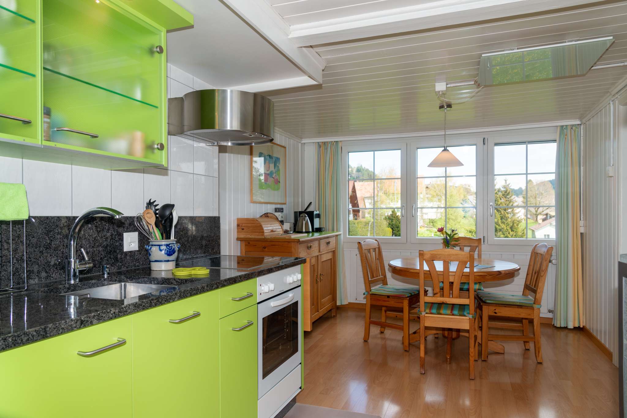 Appartement 3 pièces avec poêle de faïence et poêle-cheminée. Emplacement calme, ensoleillé et central. Jardin avec terrasse à usage commun, entrée indépendante. Linge de lit, de cuisine et de bain fourni.