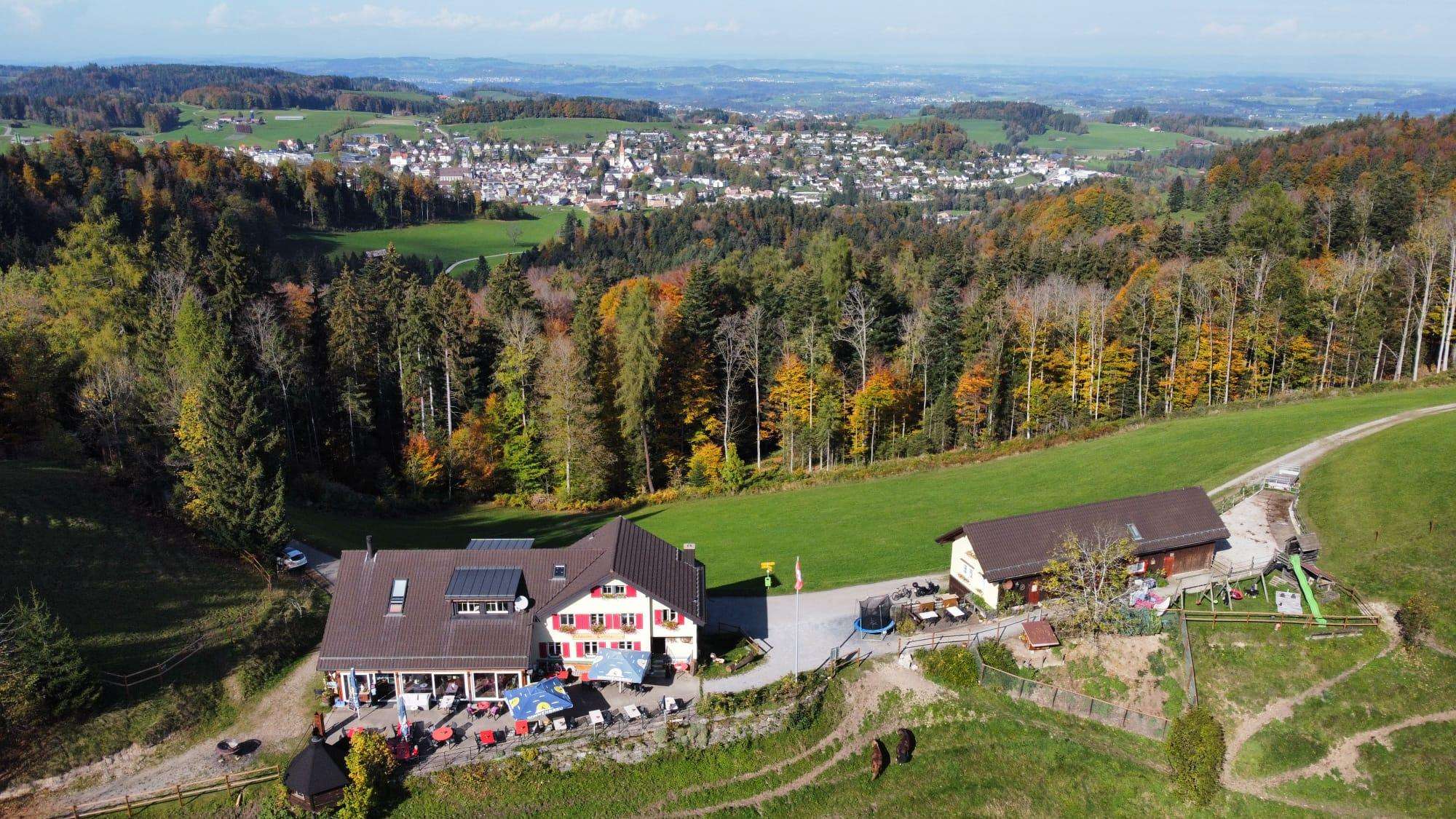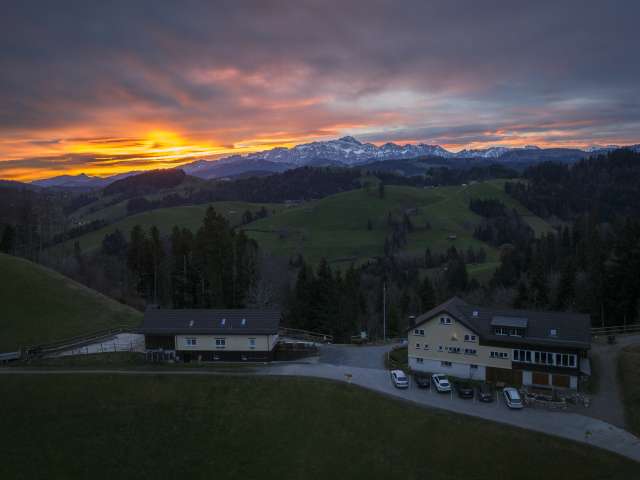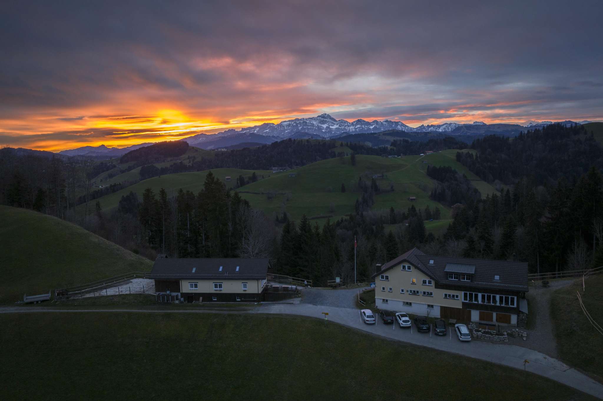 L’auberge est située en bordure du pays d’Appenzell, sur le territoire de Schwellbrunn, à proximité de la frontière avec Degersheim, dans le canton de Saint-Gall. La vue sur le paysage vallonné est magnifique. Au sud, on aperçoit le massif de l’Alpstein avec le Säntis.