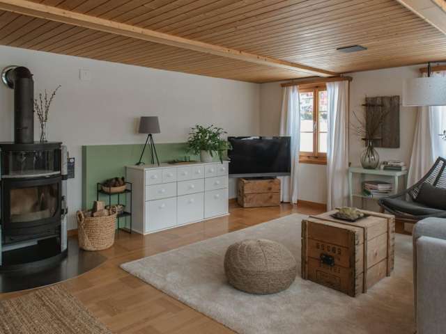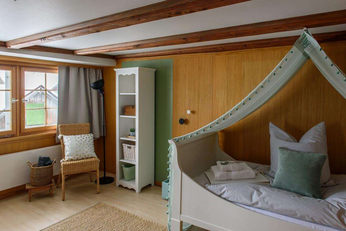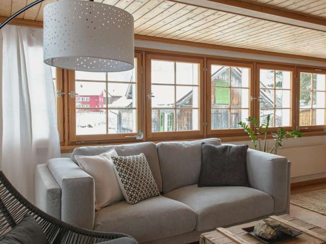 À Urnäsch, les activités ne manquent pas: les plus beaux itinéraires de randonnée et de VTT de l’Alpstein commencent directement devant la porte de la maison. En hiver, le téléski du village et la piste de ski de fond se trouvent à quelques pas seulement. Mais ce sont surtout les petites choses qui restent en mémoire. Votre lieu de vacances ne doit pas être le seul à vous émerveiller. C’est pourquoi les hôtes se sont particulièrement souciés de l’aménagement de cet appartement de vacances et ont mis du cœur à l’ouvrage. Dans toute la maison, on trouve de jolis détails qui racontent l’époque où La Rose était une boulangerie. Cet appartement de quatre pièces est réparti sur trois étages. Les deux chambres peuvent accueillir jusqu’à cinq personnes. L’espace de jeu et de lecture ainsi que le salon spacieux sont des lieux de bien-être pour petits et grands. L’appartement de vacances est situé à cinq minutes du centre du village. Faire ses courses à pied en toute décontraction est tout aussi simple que de s’y rendre en transports publics.