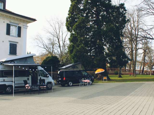 A 700 mètres maximum à pied, vous découvrirez quelques magasins et restaurants ainsi que la gare, les arrêts de cars postaux, la piscine, le cinéma, l'aire de jeux et une station de tri des déchets. L'emplacement est suffisant pour deux campeurs avec comportement de chaise pliante. Passer la nuit dans des véhicules n'est autorisé qu'avec des toilettes privées.