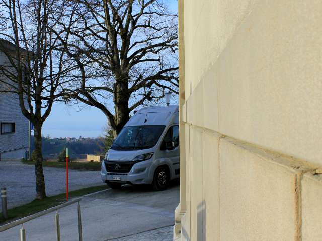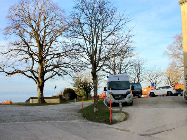 Le parking en gravier peut accueillir deux campeurs avec comportement de stationnement. A courte distance à pied, vous découvrirez quelques commerces et restaurants ainsi que la gare, des arrêts de cars postaux, une piscine, un cinéma, une aire de jeux et une station de tri des déchets. Passer la nuit dans un véhicule n'est autorisé que si celui-ci dispose de ses propres toilettes.