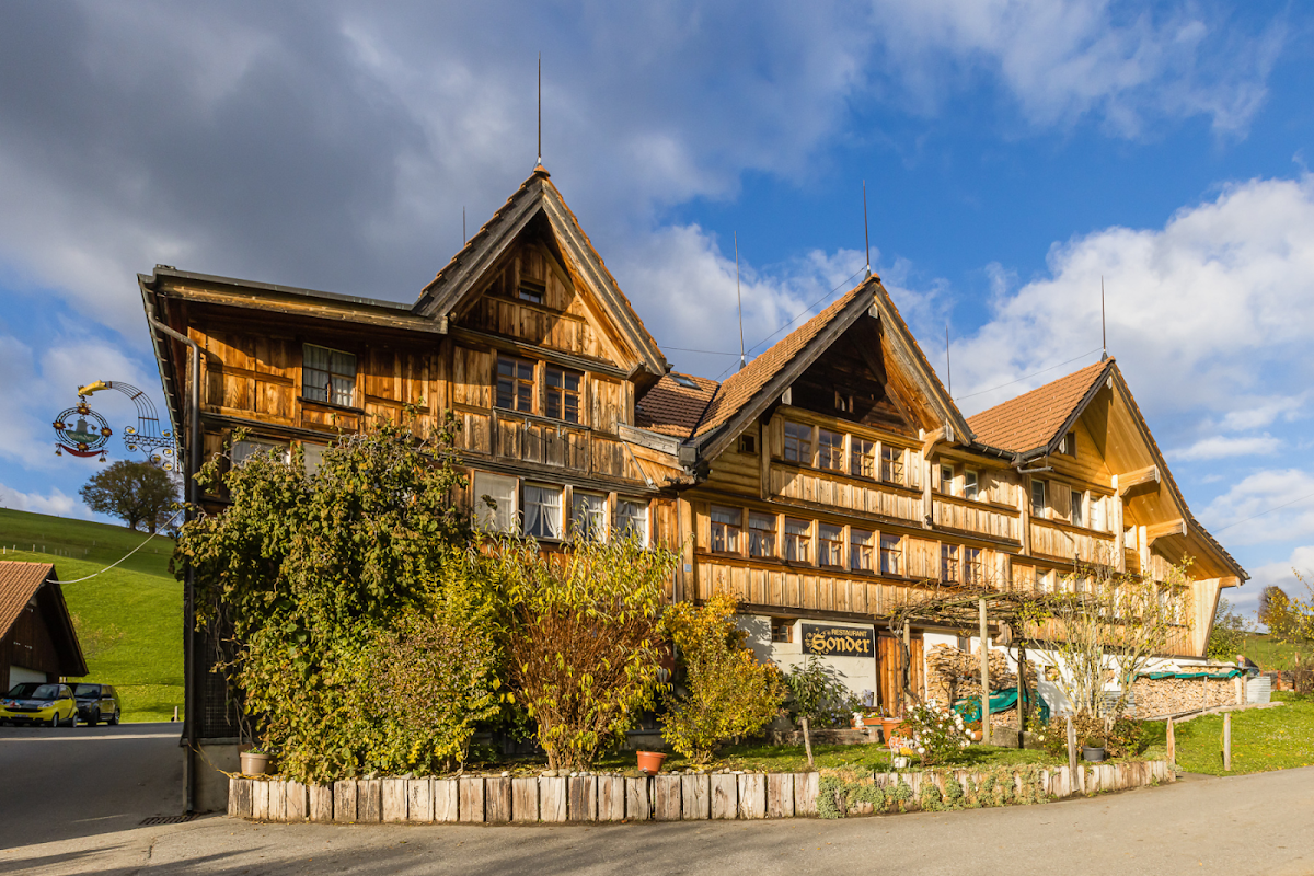 Le restaurant bSONDERig est situé entre deux communes, Appenzell et de Hundwil, dans le hameau de Sonder qui fait partie du magnifique village de Stein (AR).