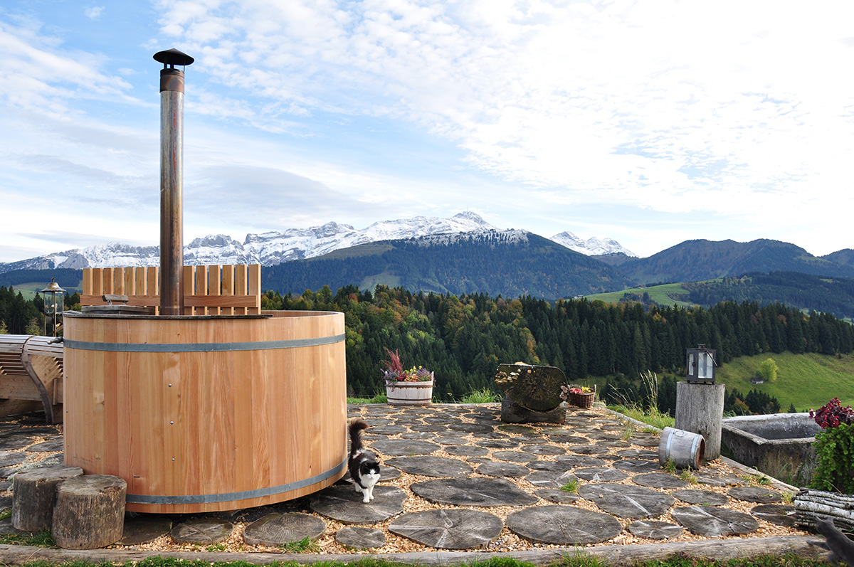 L’Alp Höheli se trouve au cœur des collines verdoyantes du pays d’Appenzell. Dans le calme de la nature, vous pouvez laisser vagabonder votre regard sur la plaine et profiter du paysage. L’Alphüsli peut accueillir 10 personnes en hiver et 15 personnes en été. Il comporte une petite cuisine (ne permettant pas de cuisiner soi-même), un salon et trois chambres avec des lits et une salle de bains. Les lits sont équipés de duvets. Le thé est cuisiné et chauffé au bois, pour une atmosphère conviviale. Le jardin abrite un hot pot à usage commun. Ayant à cœur de fournir des produits régionaux et de saison, nous achetons nos produits à des revendeurs de Hundwil, Urnäsch, Gonten et Appenzell.