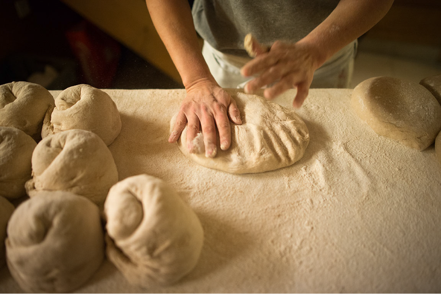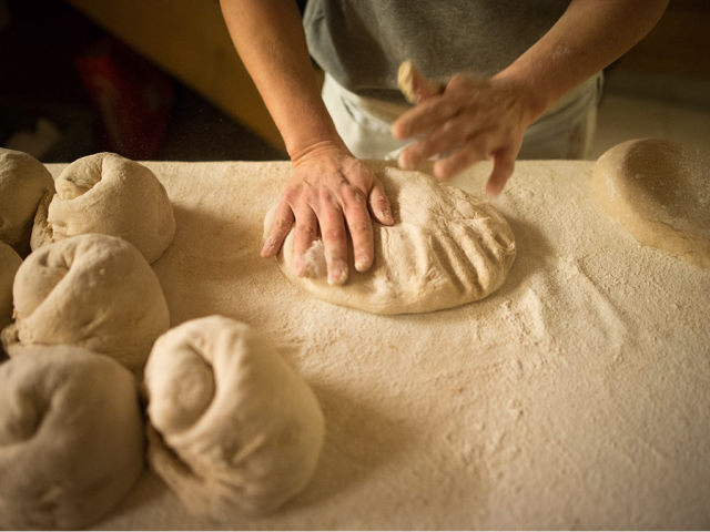 La boulangerie au feu de bois produit quotidiennement du pain, des petits pains et des pâtisseries. Les produits de boulangerie sont fabriqués de manière traditionnelle avec des matières premières biologiques de grande qualité, du talent et beaucoup de temps pour préparer les pâtes.