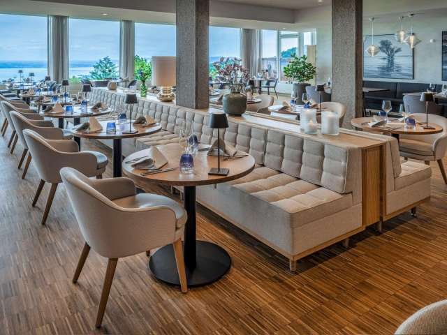 L’Hotel Heiden offre une vue imprenable sur le lac de Constance. Rénové en 2022, l’établissement propose un cadre de détente mêlant harmonieusement tradition et modernité. Les 58 chambres, dont certaines avec balcon et vue sur le lac, sont équipées de lits boxspring et de douches avec ciel de pluie accessibles pour les personnes handicapées. Le restaurant de l’hôtel Acht invite à savourer de délicieux plats, composés à base d’ingrédients du terroir et de la saison. Pour votre relaxation, l’hôtel dispose d’un grand espace spa de 1000 m2 avec piscine panoramique et jacuzzi ainsi qu’une zone sauna variée. Les salles de séminaire avec vue sur le lac sont baignées de lumière et offrent le cadre idéal pour réussir vos réunions et événements.
