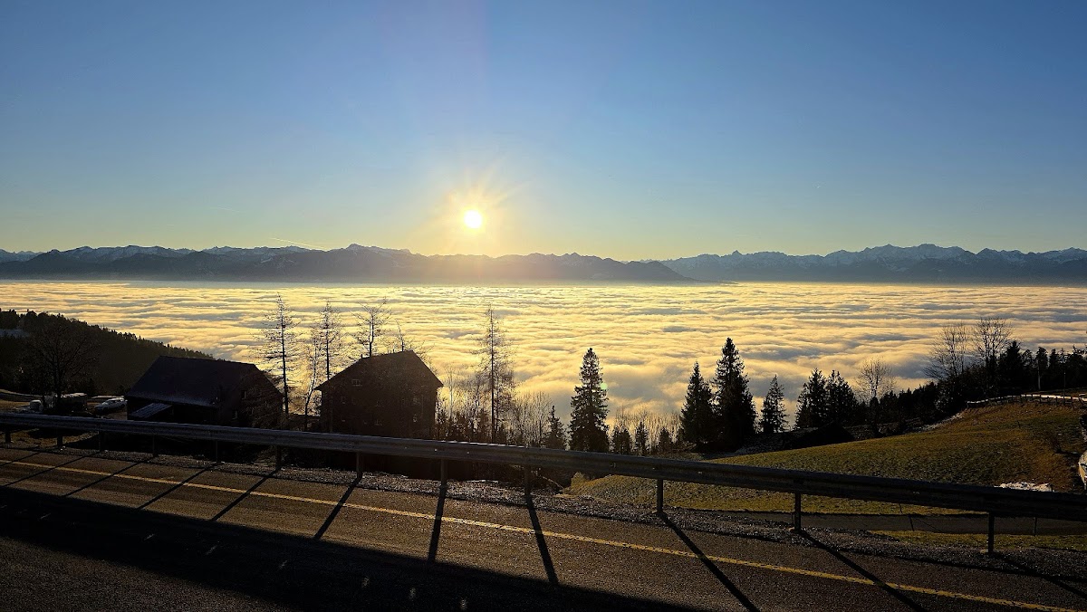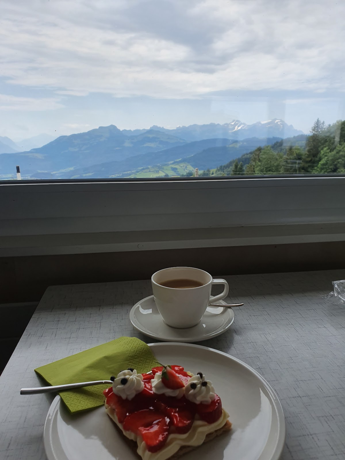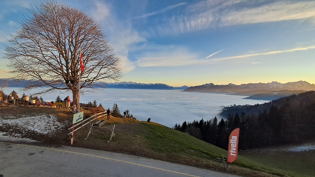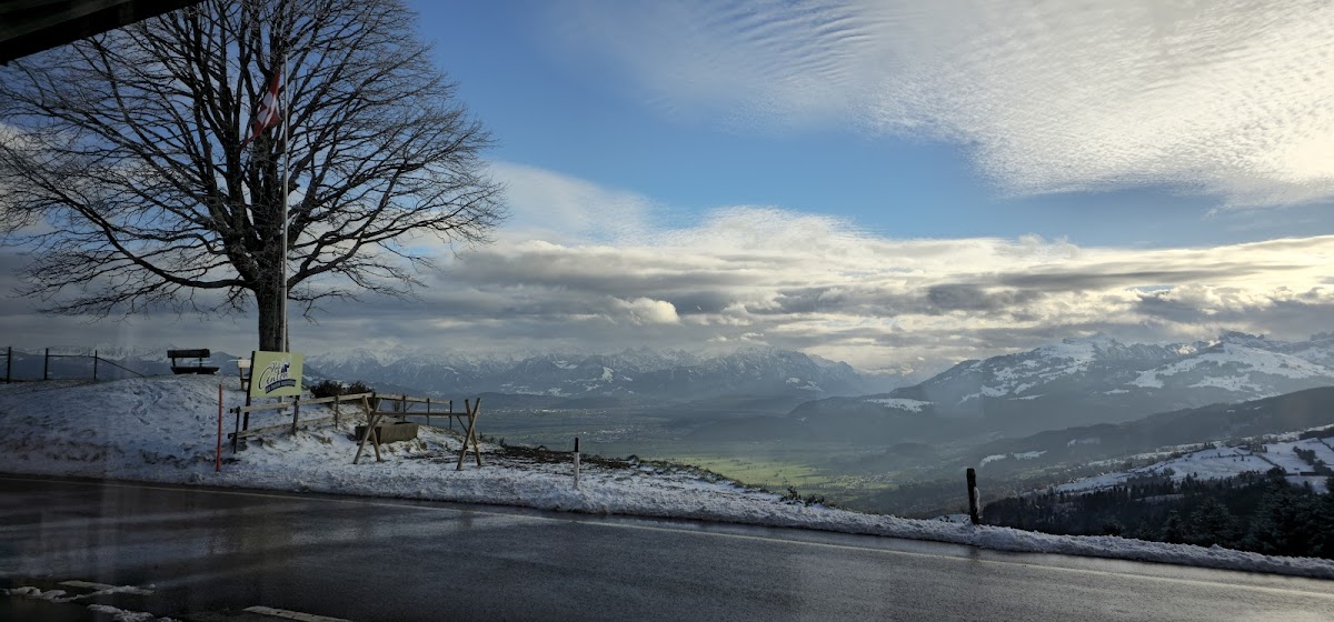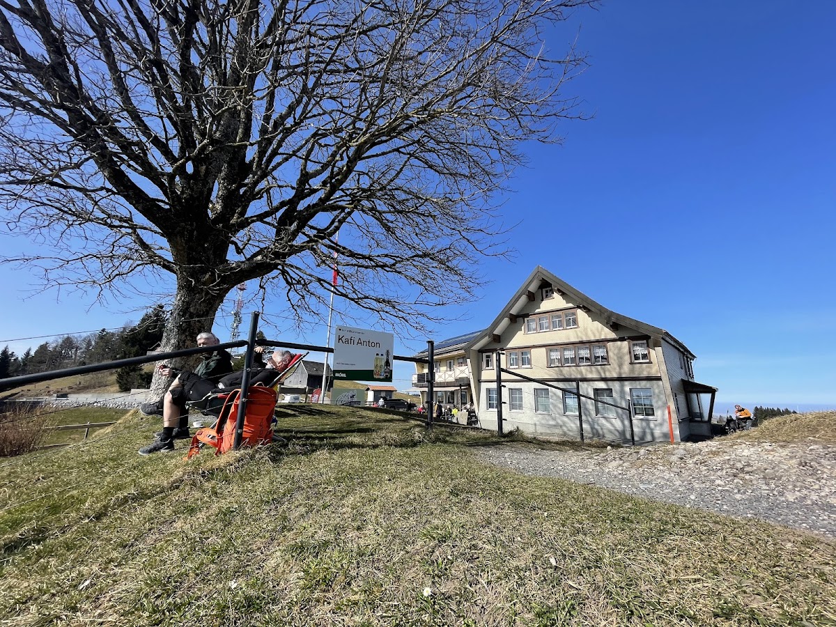 Le Kafi Anton offre une vue de rêve sur la vallée du Rhin, l’Alpstein, les montagnes autrichiennes et du Liechtenstein d’un côté et sur le lac de Constance de l’autre.