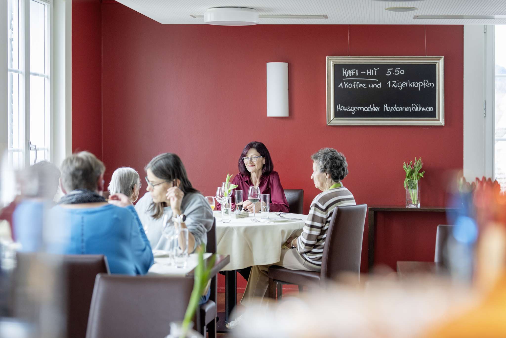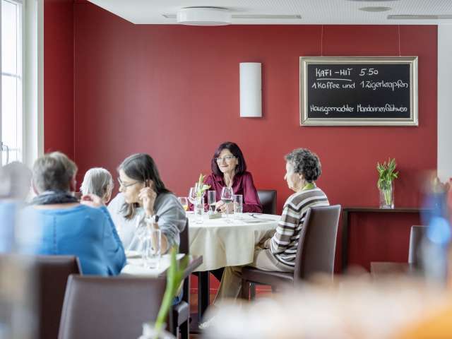 La salle de restaurant aménagée avec goût se prête également très bien aux banquets et aux fêtes de famille. Nous ouvrons également volontiers nos portes le soir pour les groupes.